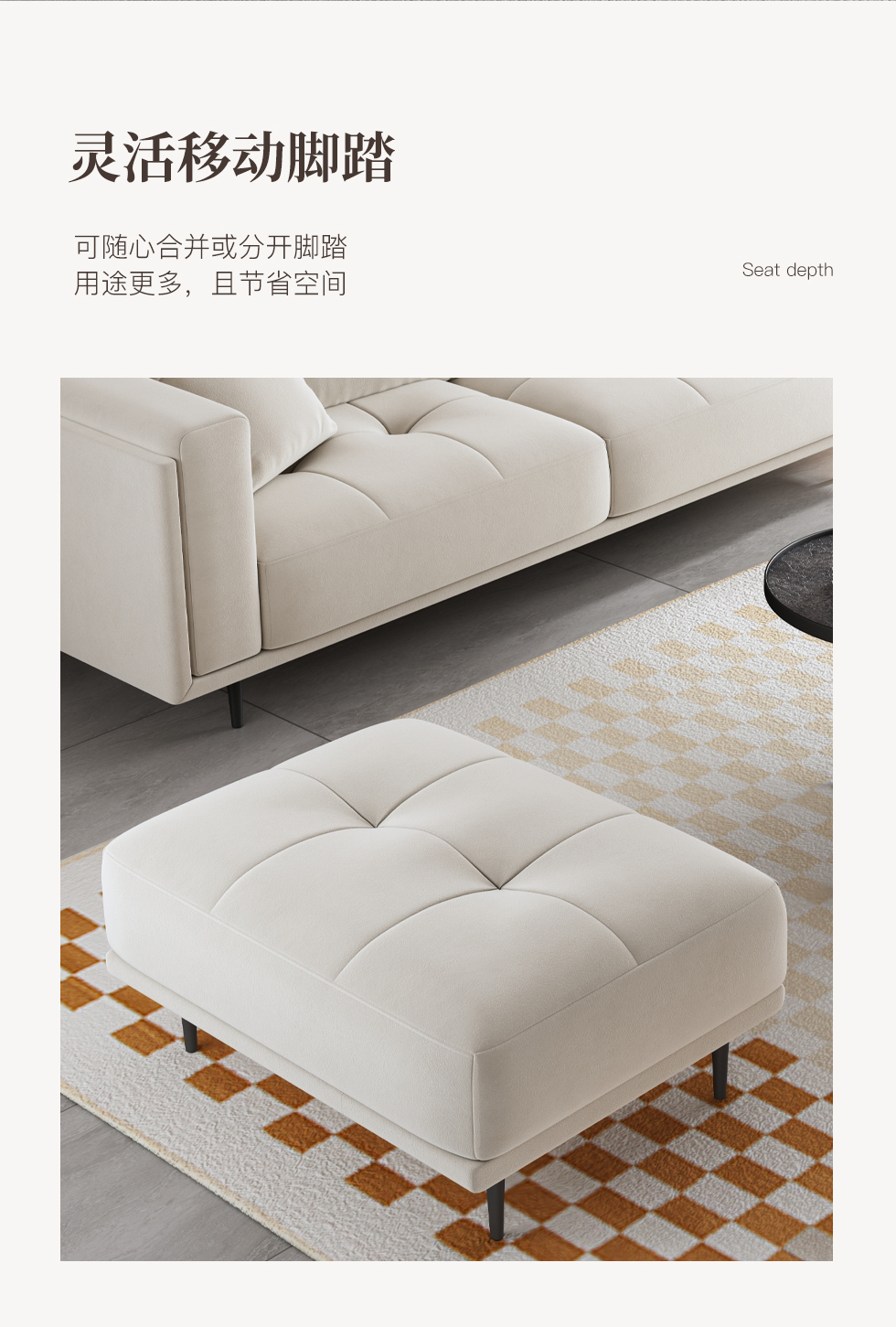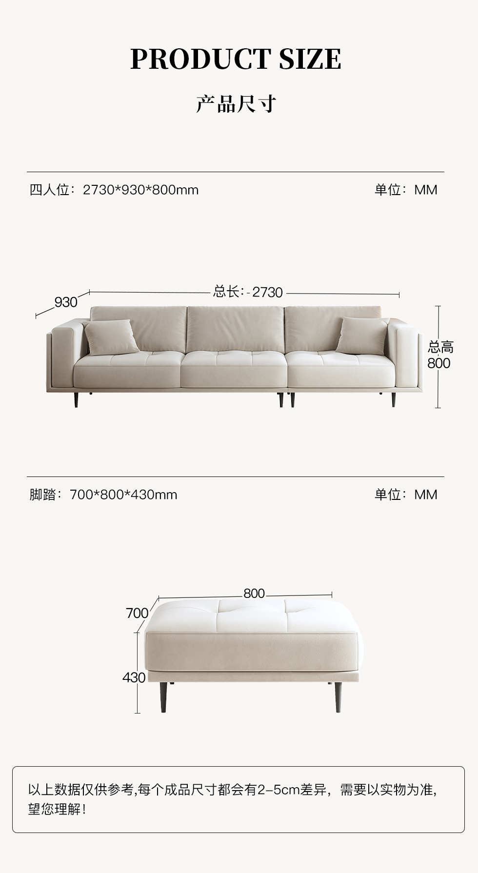 A系优选 现代简约 优质科技布料+抛光实木内架+合成板材框架+坐包填充高密度纯海绵+12公分五金脚 深灰色+米灰色 四位2.8米+脚踏¥6058