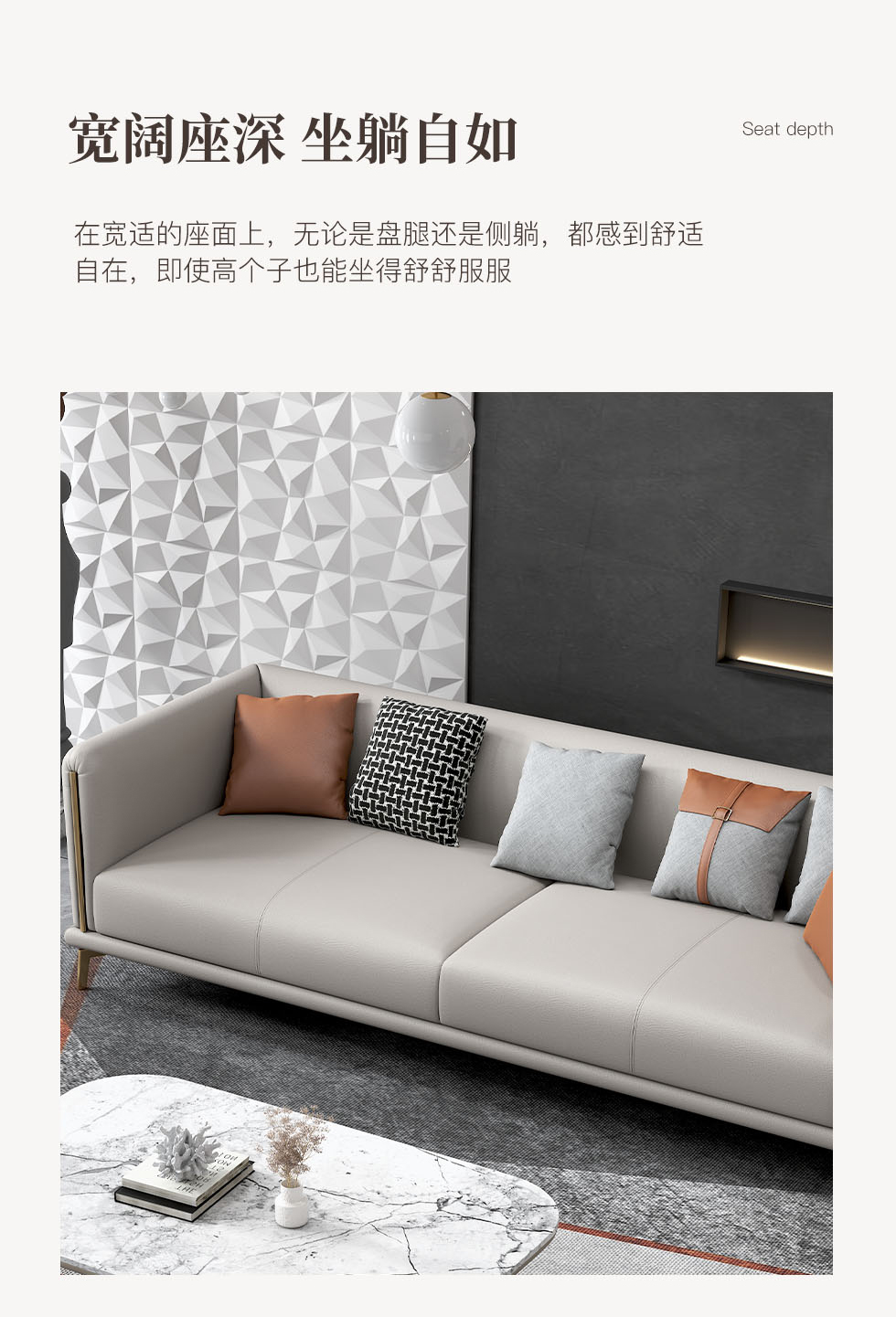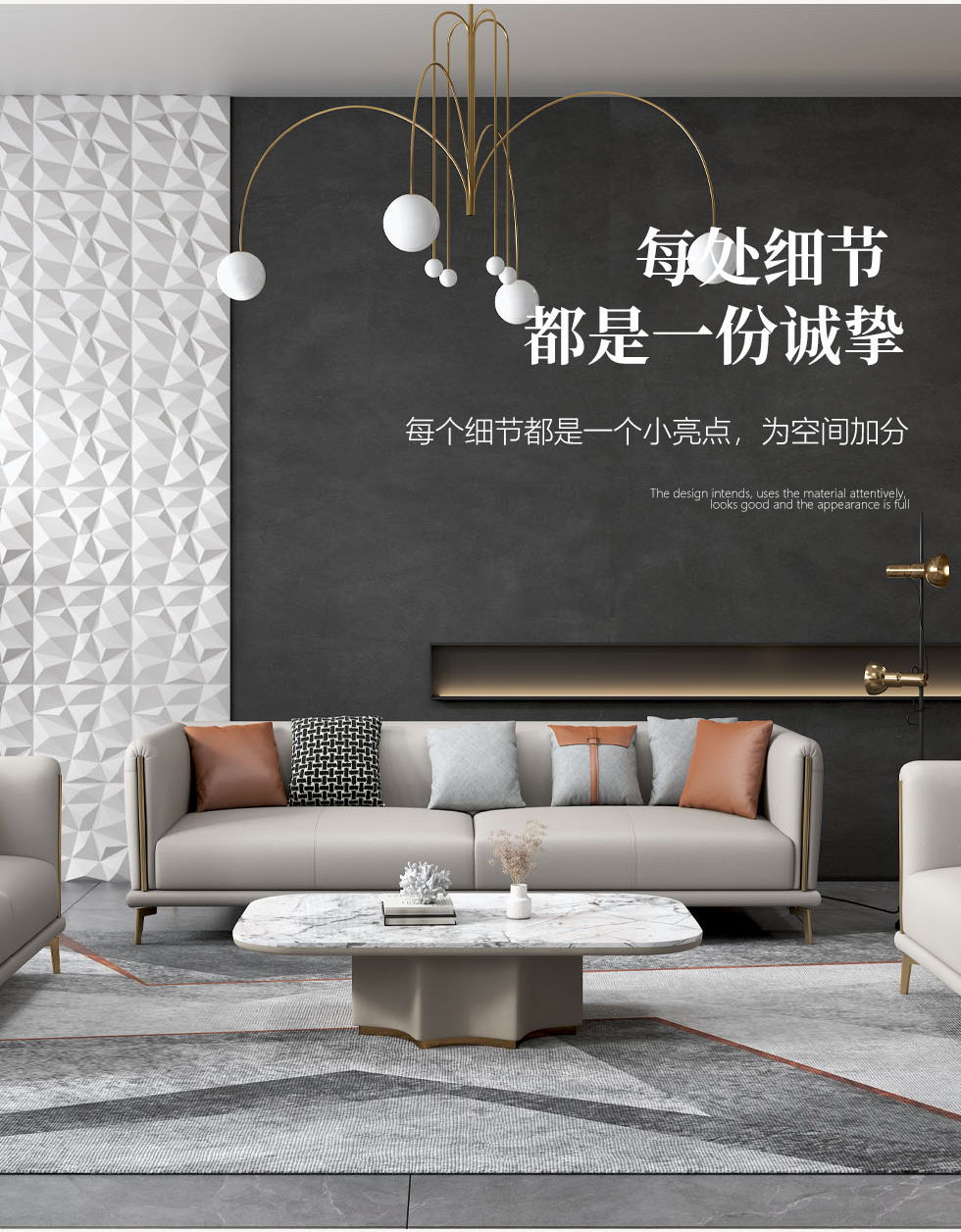 非凡工艺 现代简约 接触面头层黄牛皮+仿皮 E1级夹板+松木框架 无粉海绵 靠包赛羽绒+公仔棉填充 样色 直排2.4米三人位 皮艺沙发¥19987