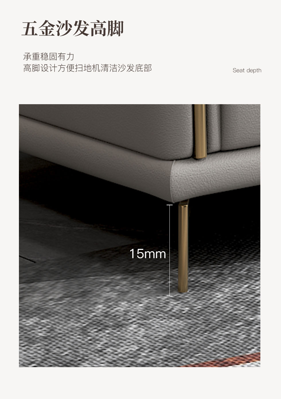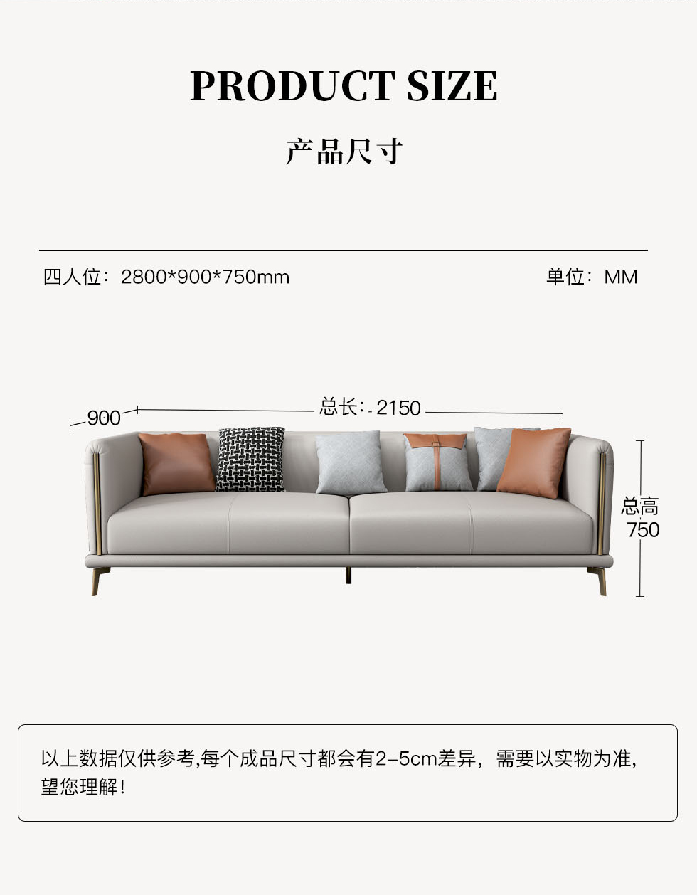 A系优选 现代简约 优质科技布料+抛光实木内架+合成板材框架+坐包填充高密度纯海绵+12公分五金脚 深灰色+米灰色 四位2.8米+脚踏