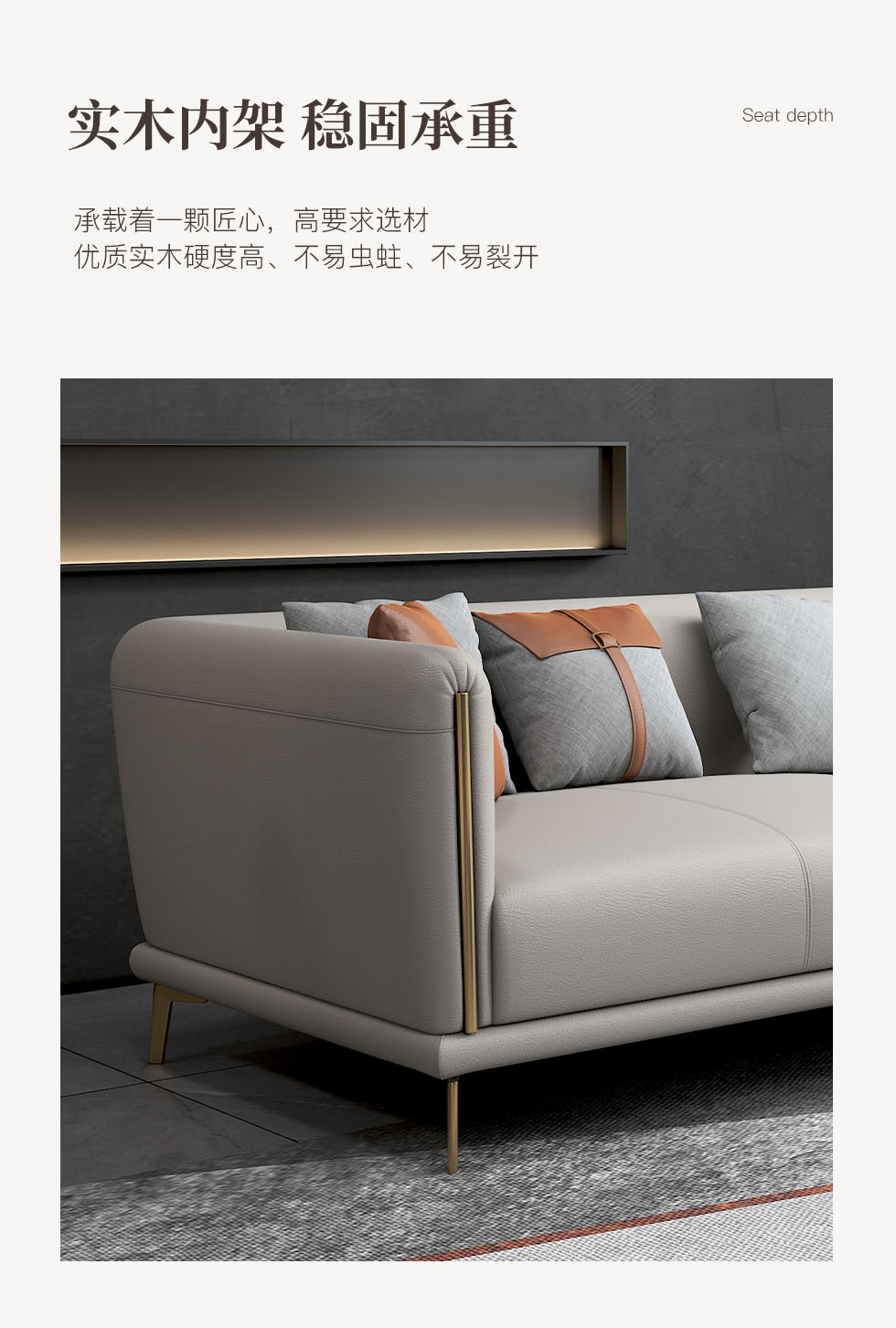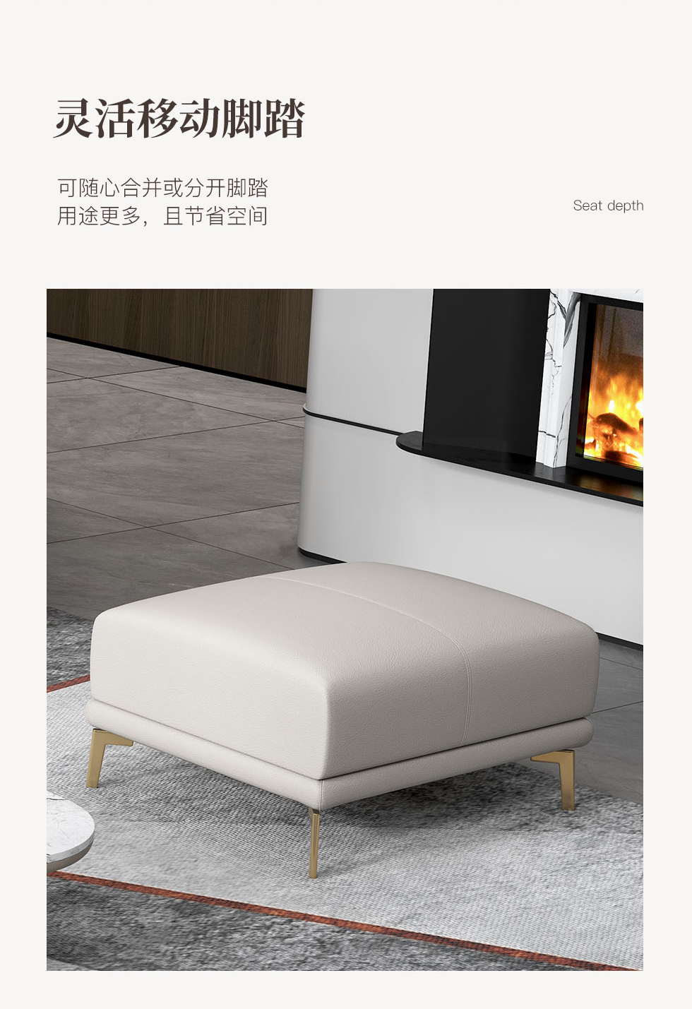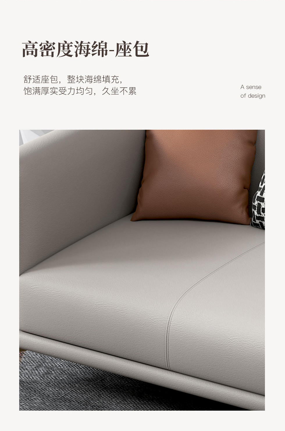 非凡工艺 现代简约 生态真皮+全实木内架+多层实木板+高回弹海绵+15分碳素钢五金脚 暖灰 皮艺沙发(2.2米三位)+脚踏