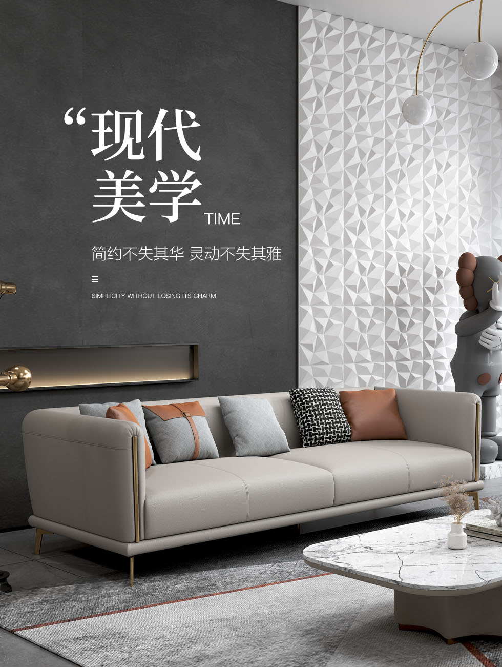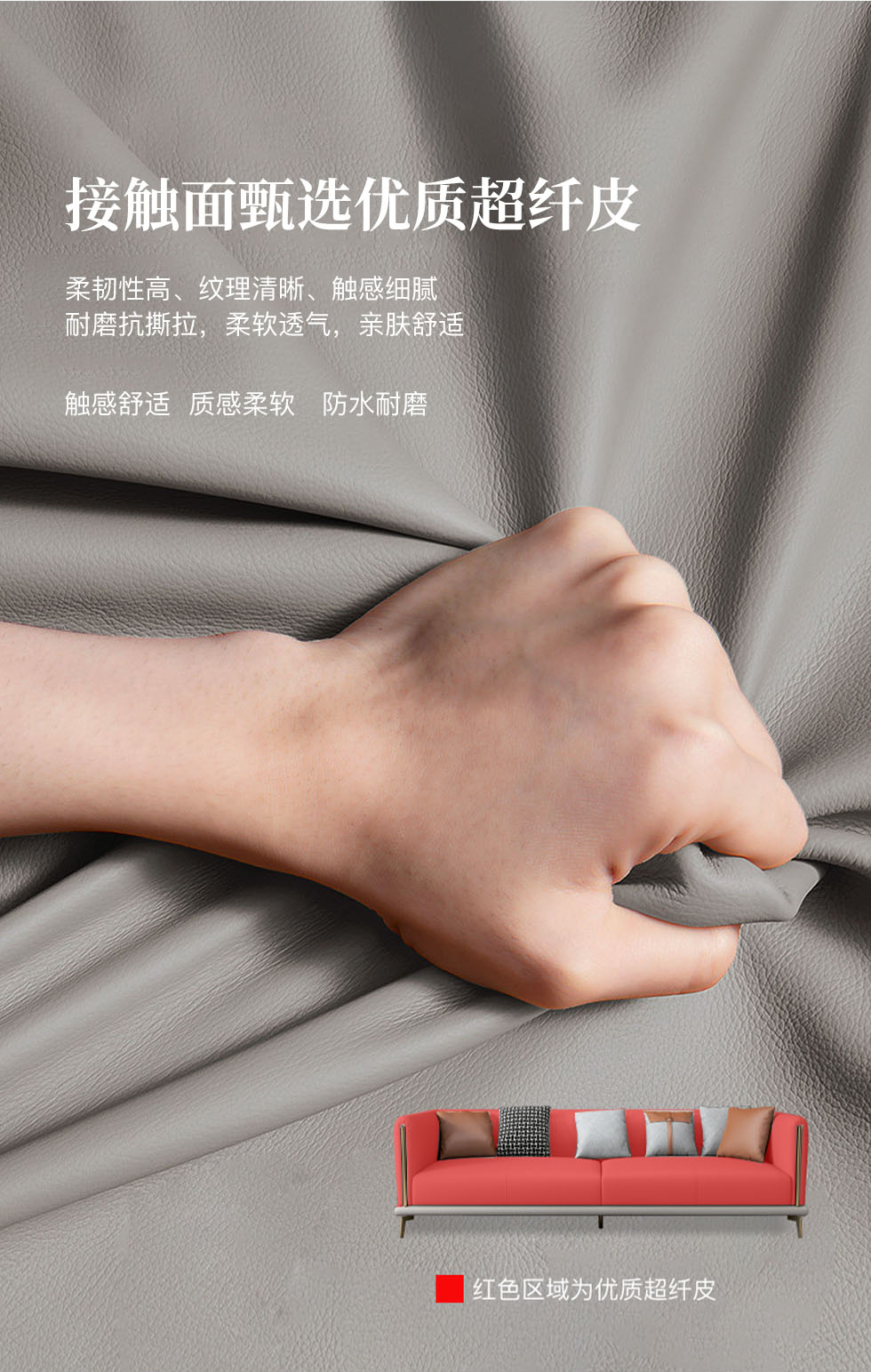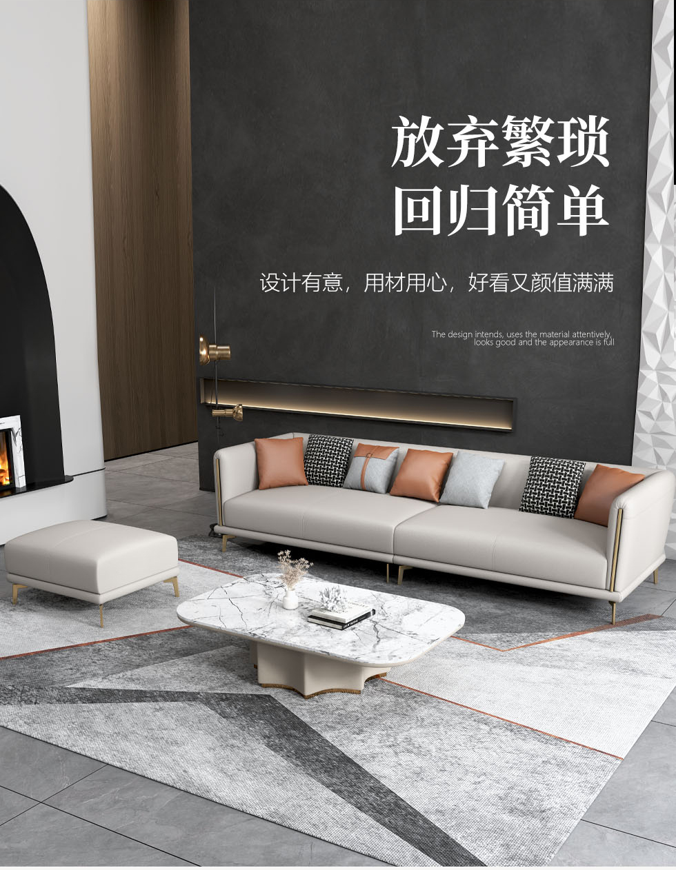 非凡工艺 现代简约 生态真皮+全实木内架+多层实木板+高回弹海绵+15分碳素钢五金脚 暖灰 皮艺沙发(2.2米三位)+脚踏