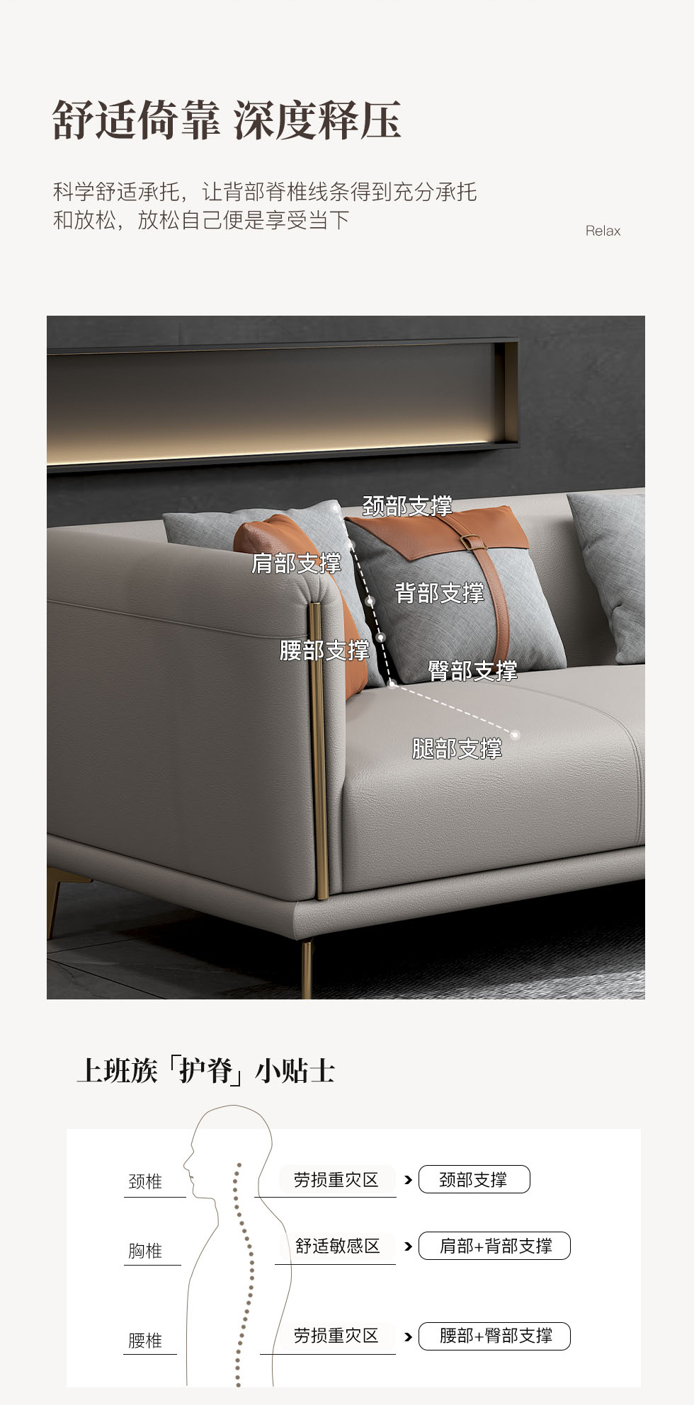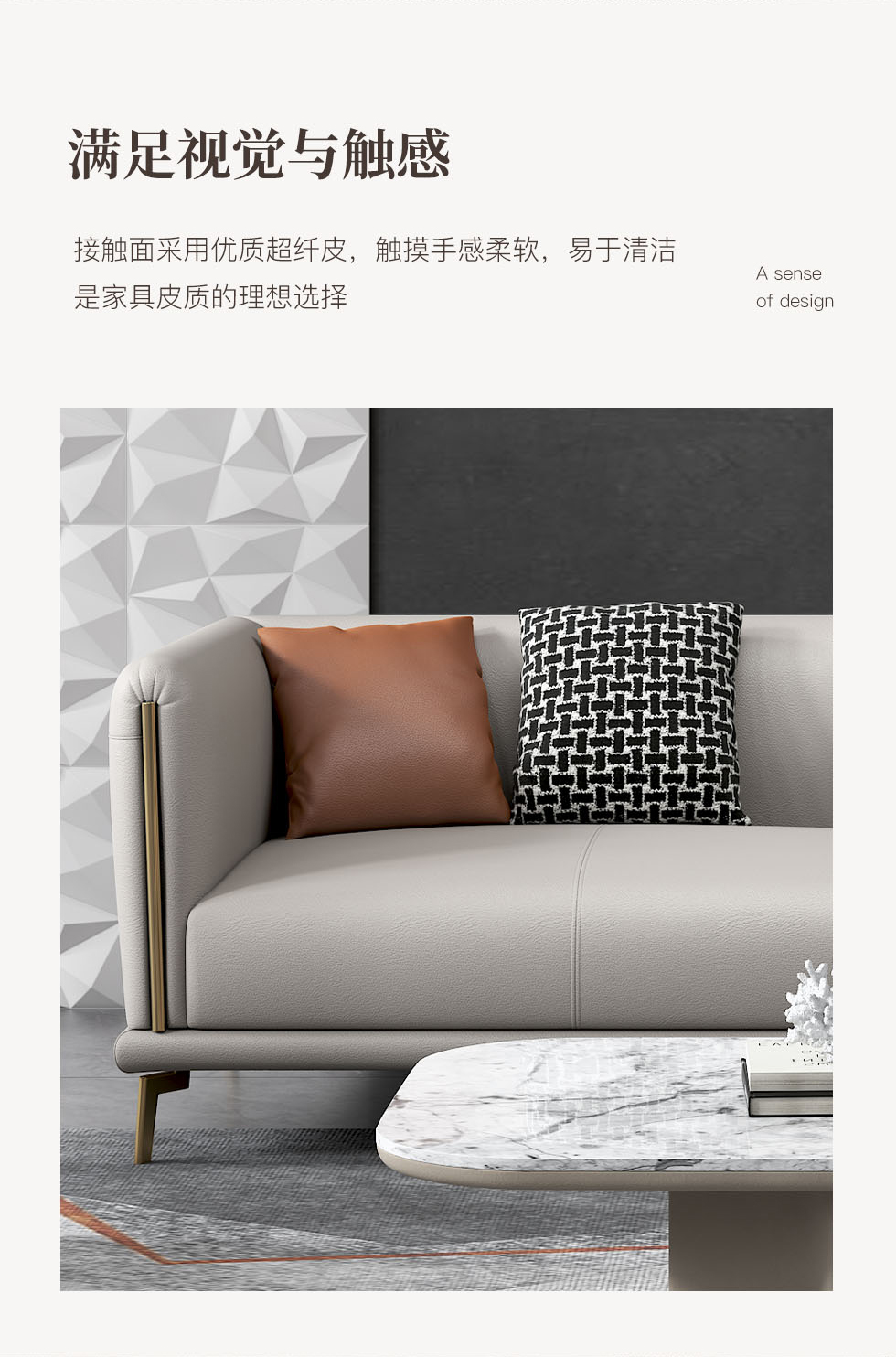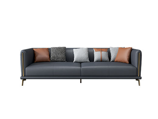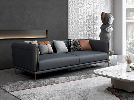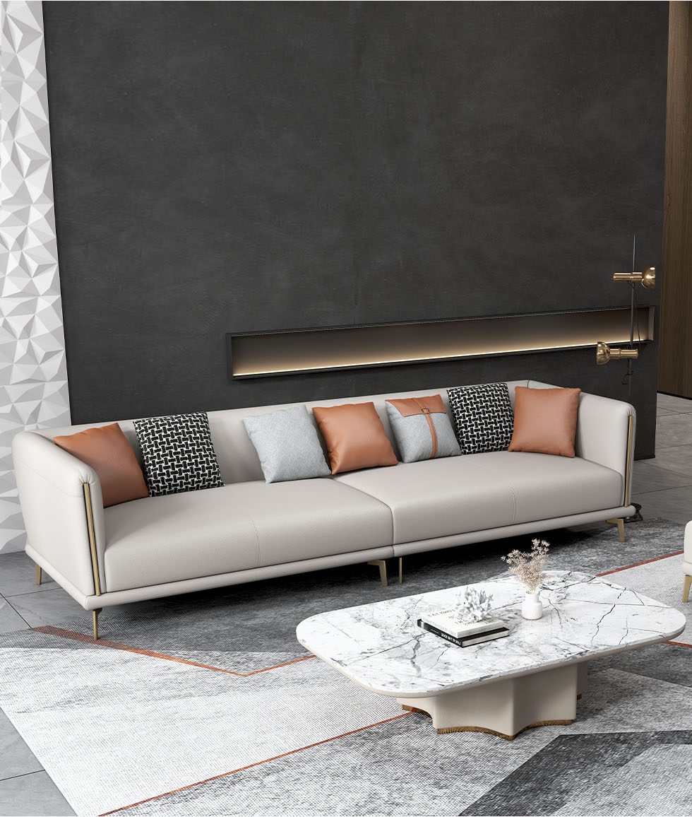 非凡工艺 现代简约 接触面头层牛皮+框架落叶松木+多层实木夹板+黑钛圆脚 2.83米左单+右双 沙发¥6461
