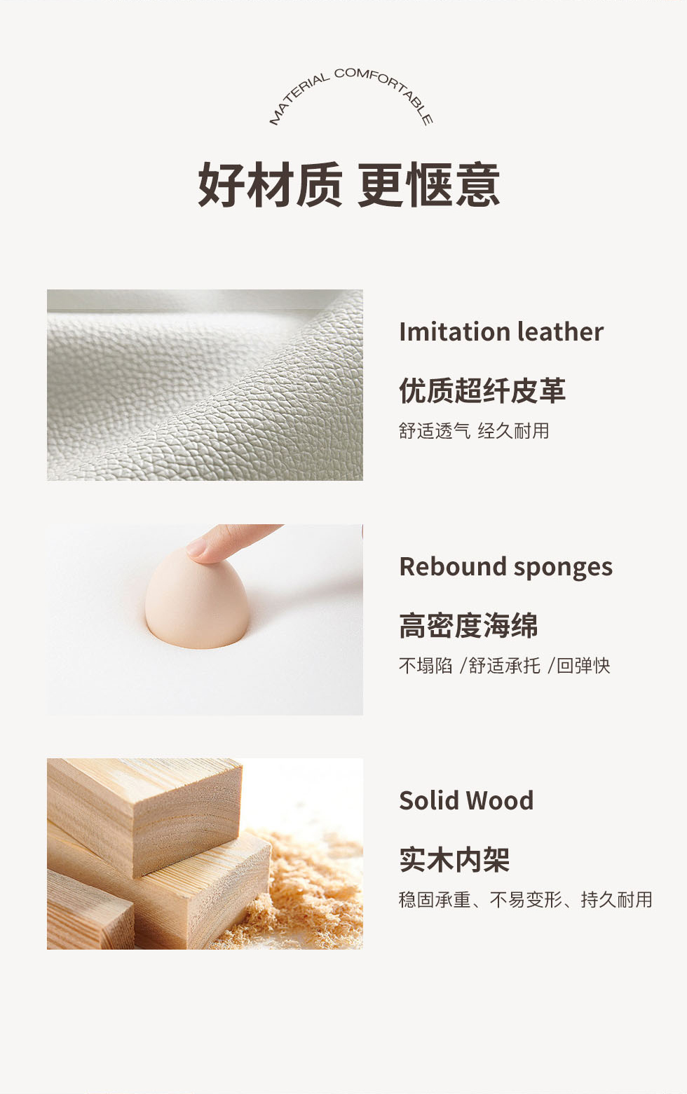 非凡工艺 现代简约 科技绒布料+抛光实木内架(桉木为主)+合成板材框架+蛇形弹簧+定位平衡网格布+绿色高弹力橡筋+靠包填充优质A+公仔棉+坐包填充高密度纯海绵+15公分喷涂五金脚(含2个抱枕)米白 三人位 2.2米沙发