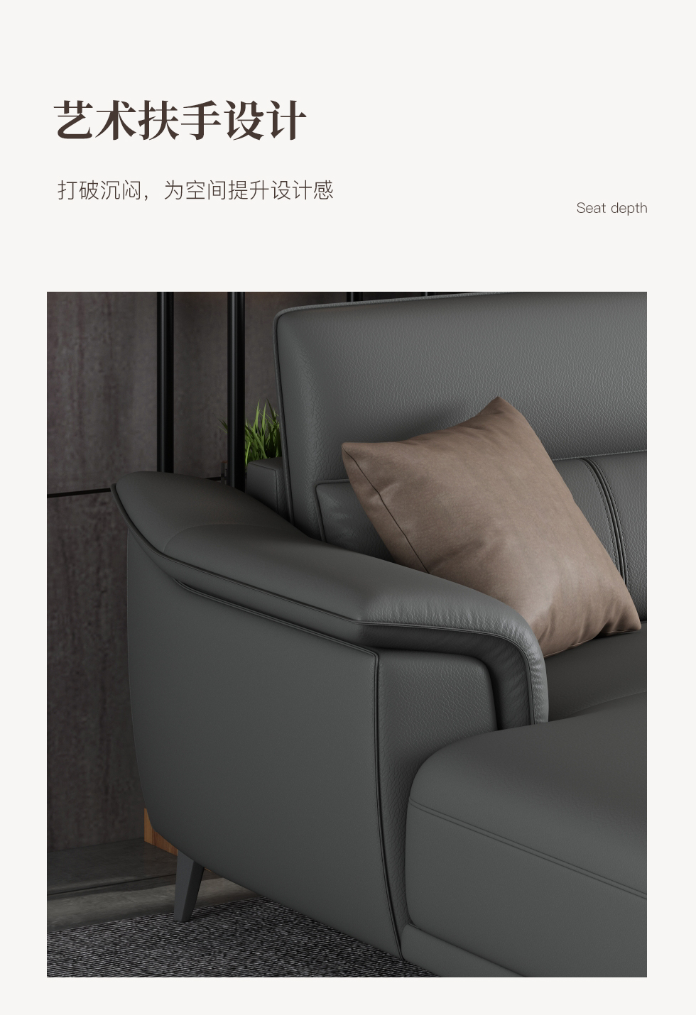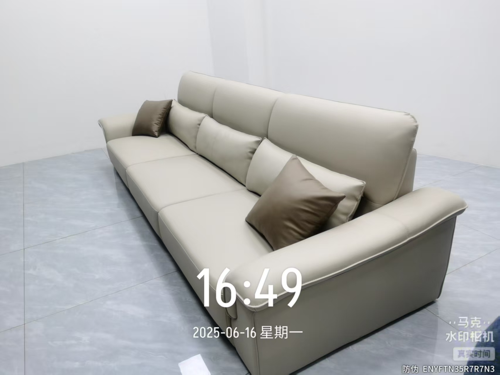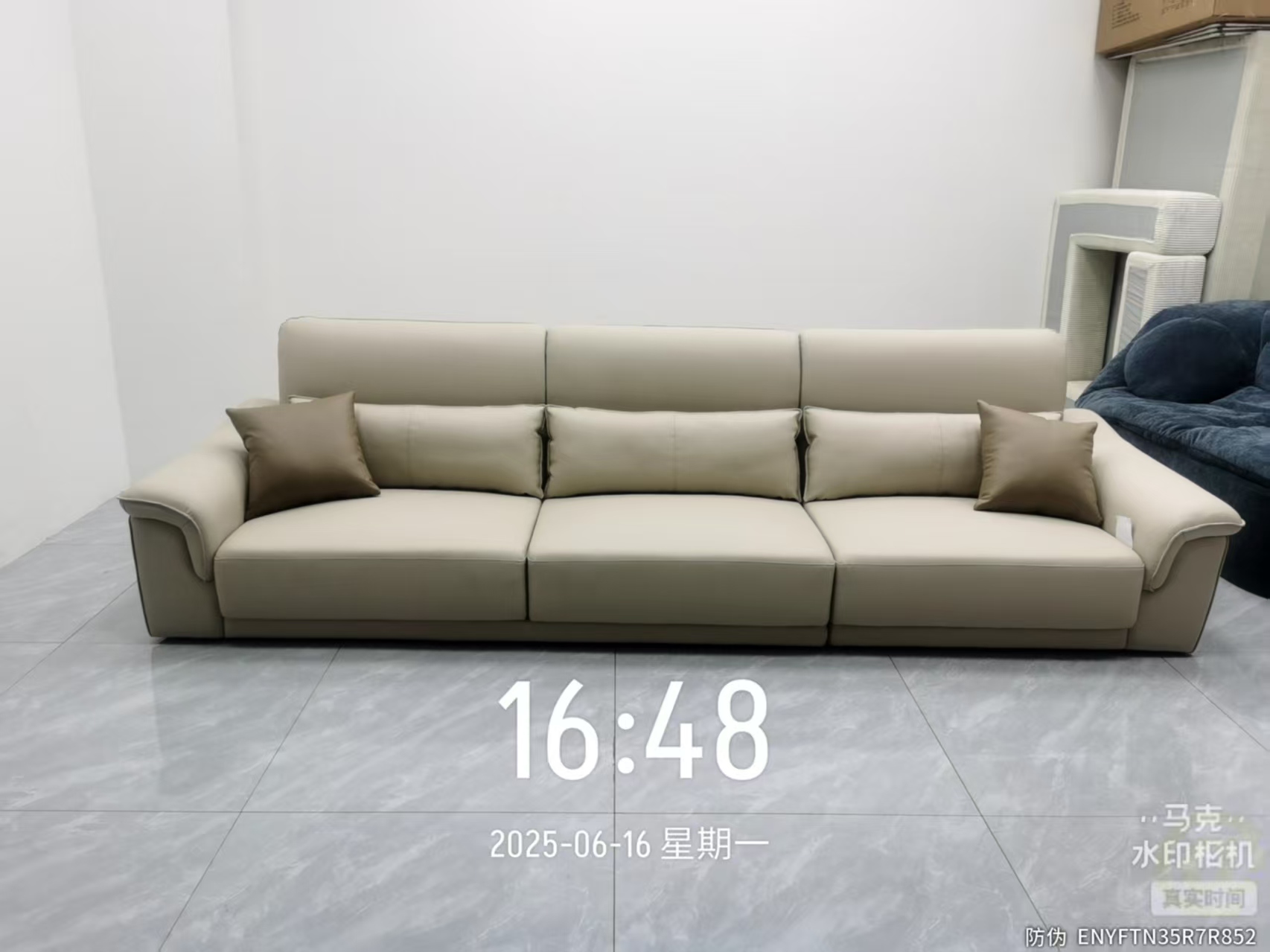 A系优选 现代简约 接触面生态真皮+赛羽绒扶手包+高密度东亚海绵+实木框架 3.1米沙发¥6058