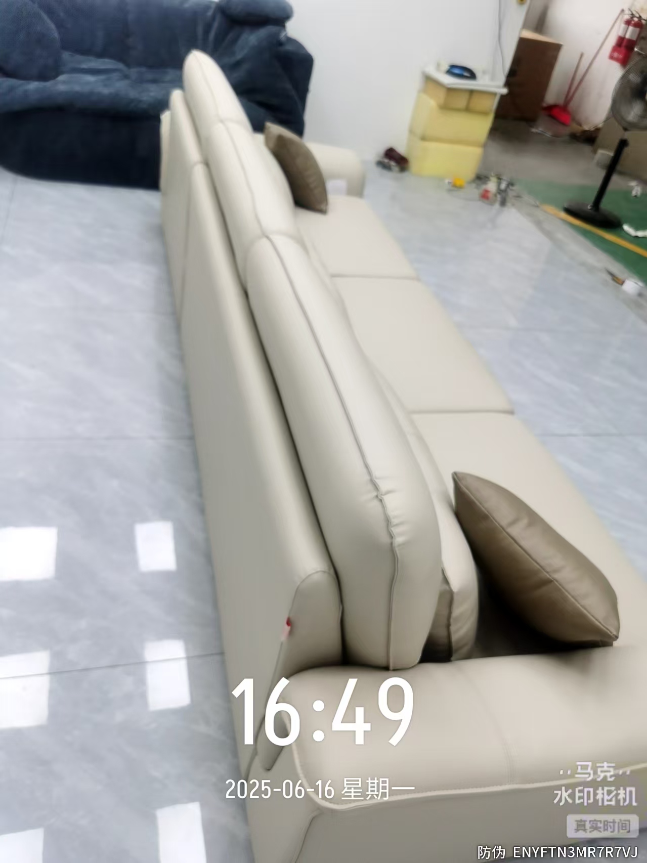 B系优选 现代简约 生态皮革,超纤皮+抛光实木内架(桉木为主)+合成板材框架+靠背腰包填充高密度海绵米色 直排(四位) 2.8米沙发¥6058