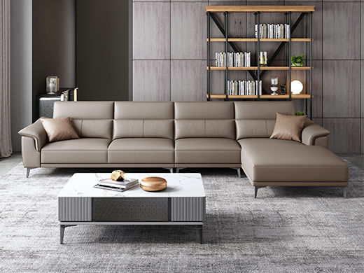 A系优选 现代简约 接触面超纤皮革+其余仿皮+抛光实木内架(桉木为主)+合成板材框架 +坐包填充高密度纯海绵 +12分五金脚 卡其色 单位+左贵妃+三位 3.53米转角沙发