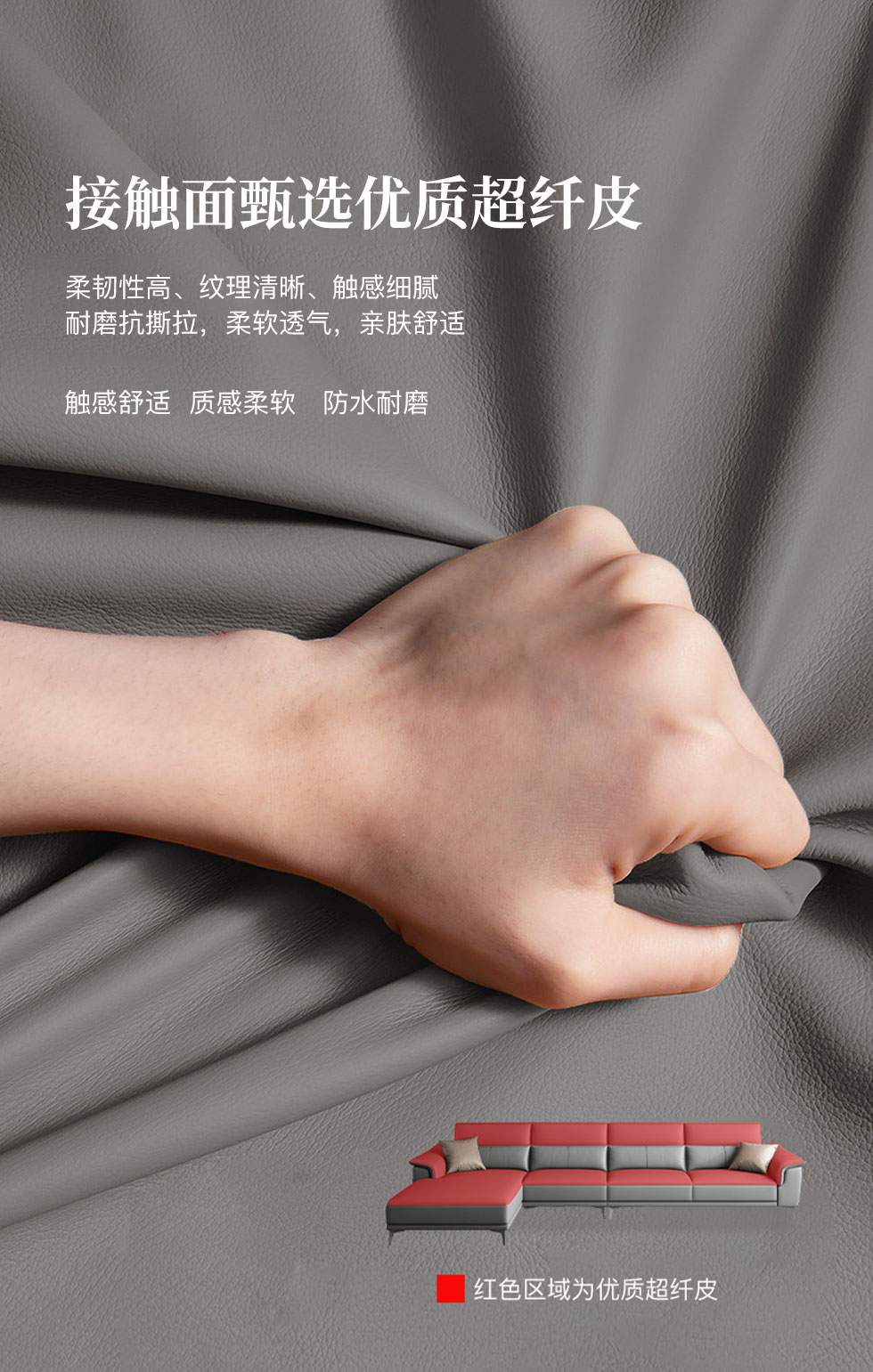 A系优选 现代简约 接触面超纤皮+科技布+仿皮+实木框架+海绵+碳素五金脚 皮艺 3.3米 转角沙发(3+1+左贵妃)