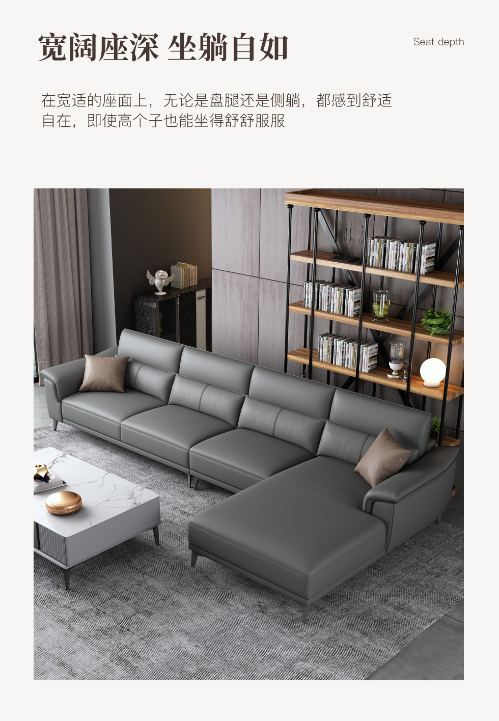 A系优选 现代简约 接触面生态真皮+赛羽绒扶手包+高密度东亚海绵+实木框架 3.1米沙发¥6058