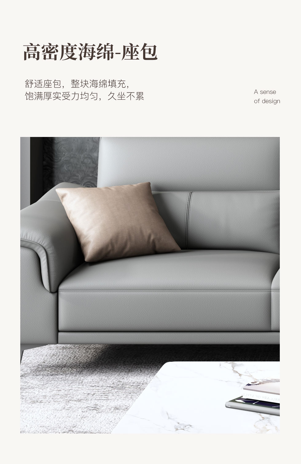 非凡工艺 现代简约 生态真皮+全实木内架+多层实木板+高回弹海绵+15分碳素钢五金脚 暖灰 皮艺沙发(2.2米三位)+脚踏