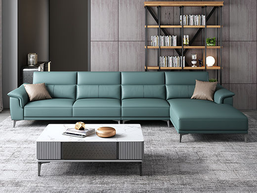 A系优选 现代简约 接触面超纤皮革+其余仿皮+抛光实木内架(桉木为主)+合成板材框架 +坐包填充高密度纯海绵 +12分五金脚 蓝绿色 单位+左贵妃+三位 3.53米转角沙发