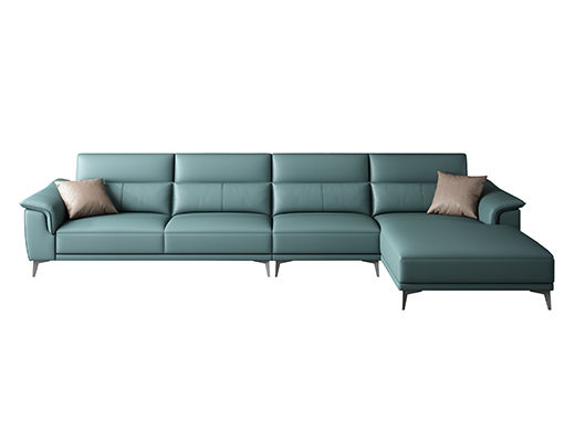 A系优选 现代简约 接触面超纤皮革+仿皮+抛光实木内架+合成板材框架+坐包填充高密度纯海绵+12分五金脚 蓝绿色 四位+脚踏 2.9米沙发