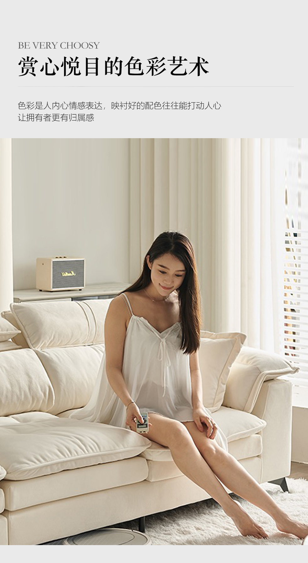 云端 奶油风 科技布+俄罗斯进口落叶松内架米白色 1+3+左贵妃转角3.4米沙发¥8155