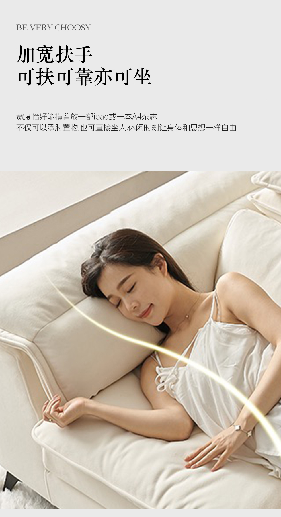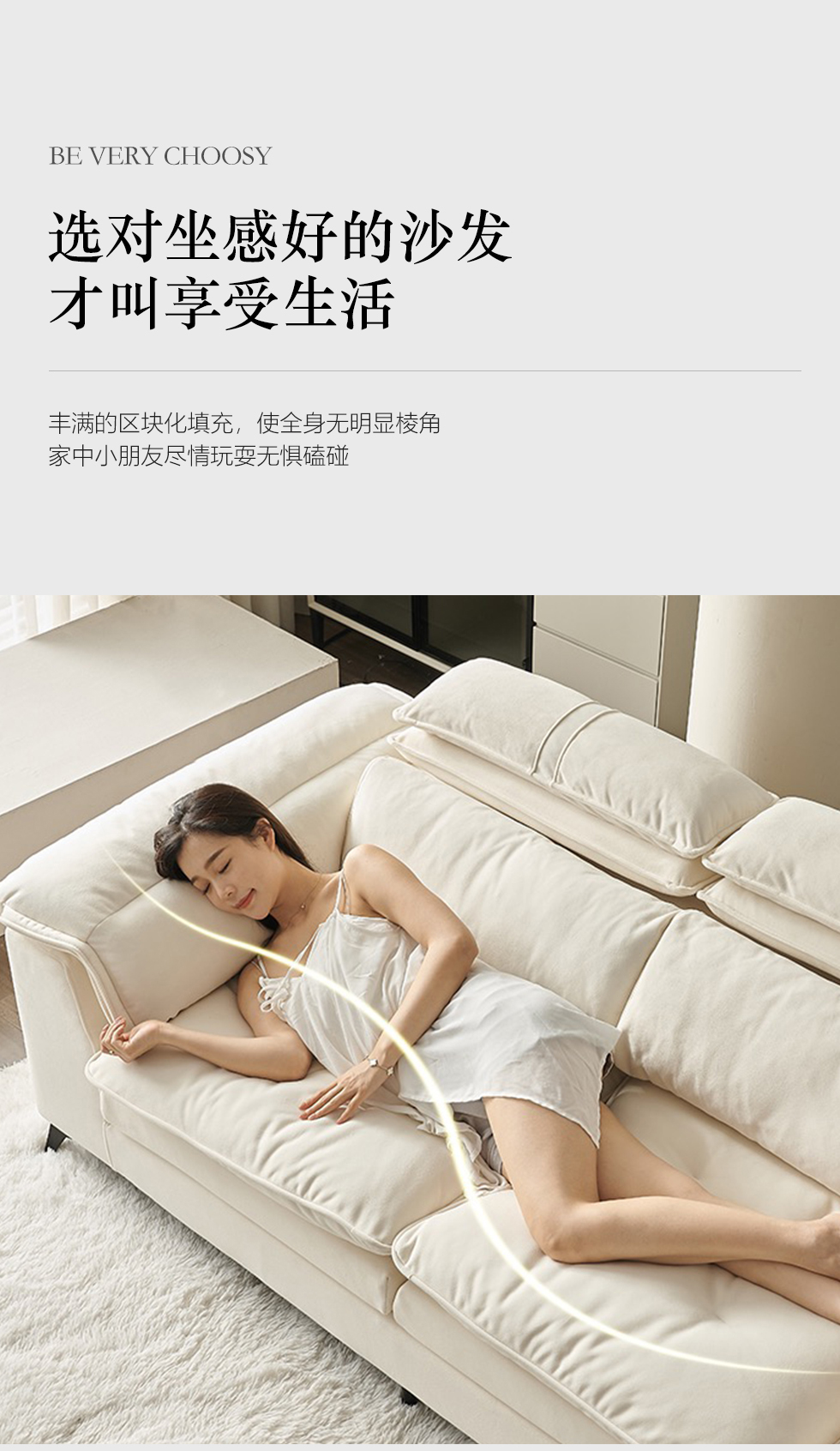 A系优选 奶油风 高密度海绵+全实木框架 科技布面料 抱枕羽绒 图片色 四人位 网红钢琴键 2.7米沙发