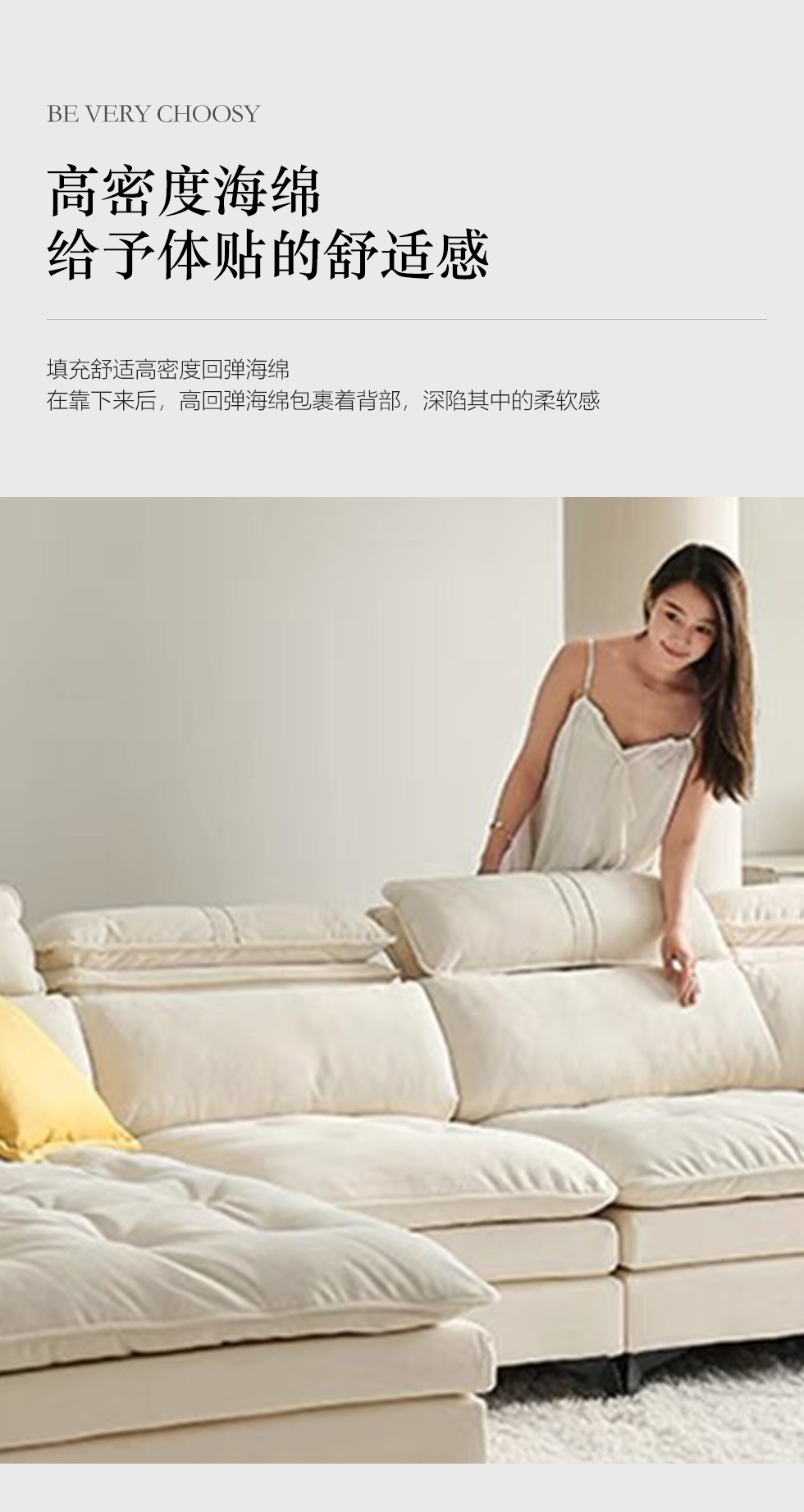 B系优选 奶油风 高密度海绵+全实木框架 科技布面料 靠背扶手羽绒填充 图片色 五人位+贵妃踏 网红云朵 3.2米 沙发