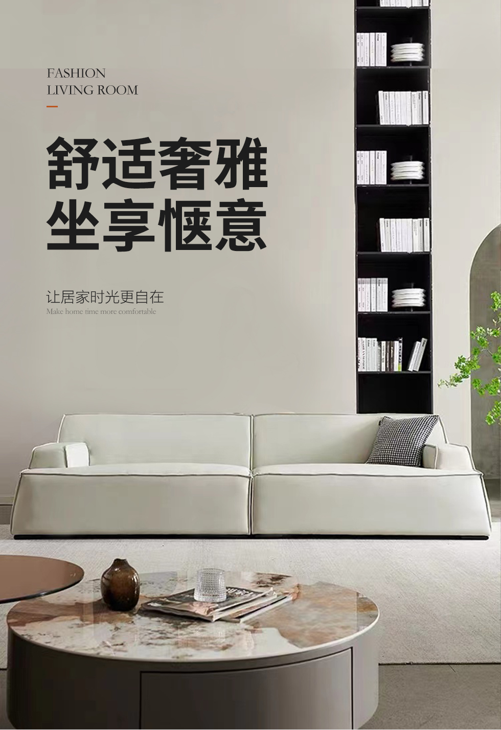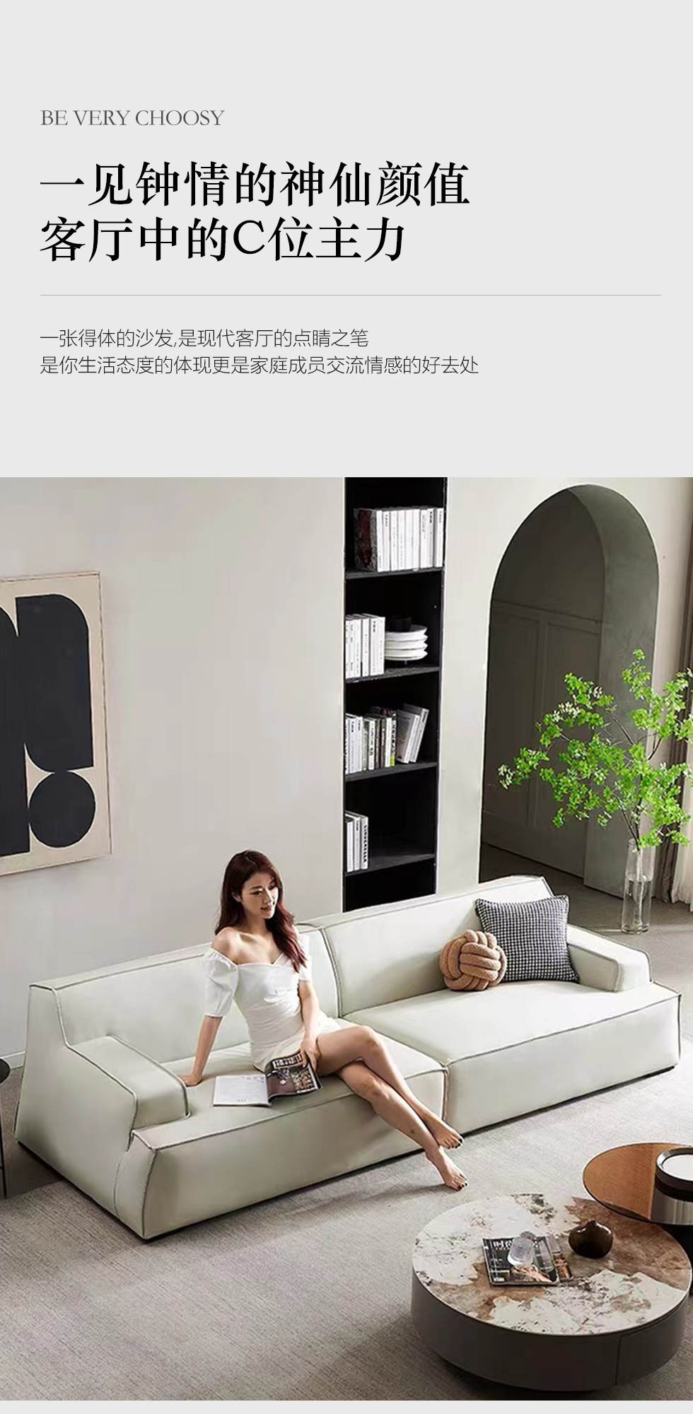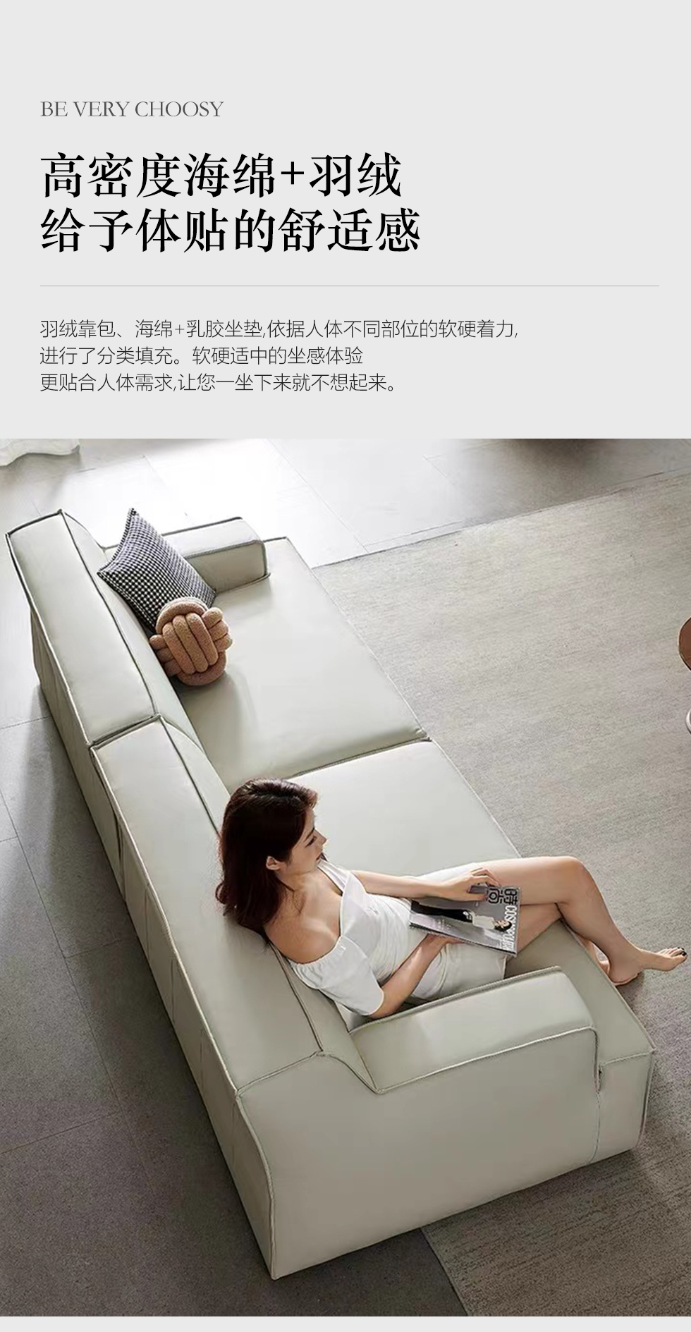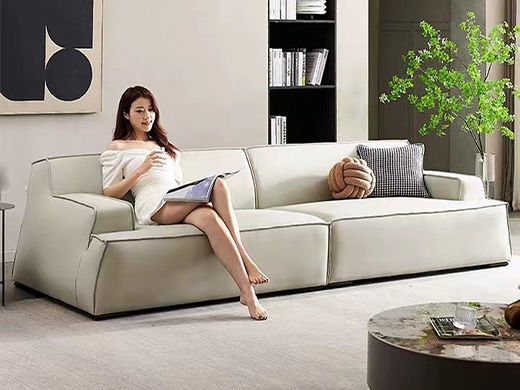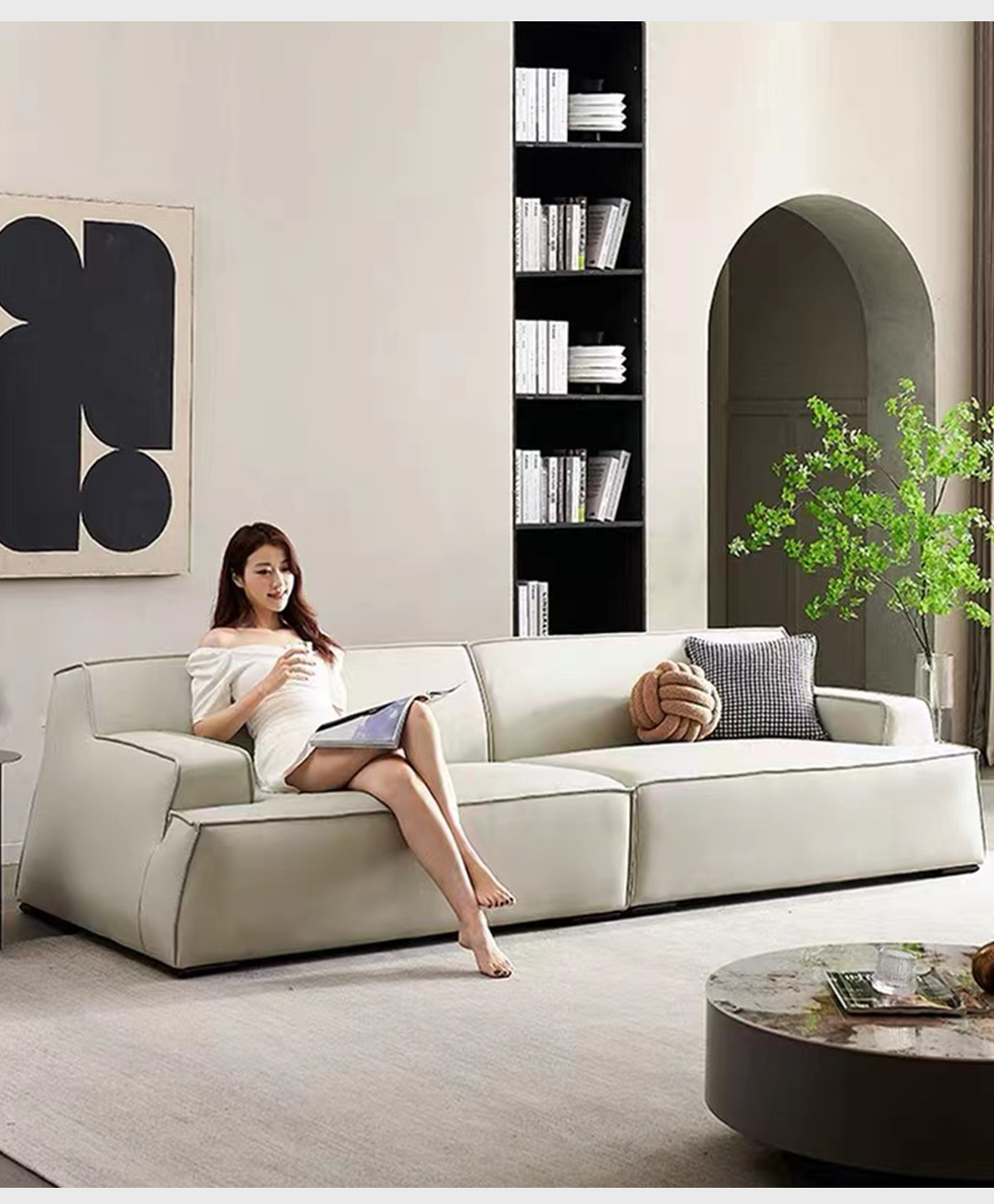 A系优选 现代简约 接触面生态真皮+赛羽绒扶手包+高密度东亚海绵+实木框架 3.1米沙发¥6058