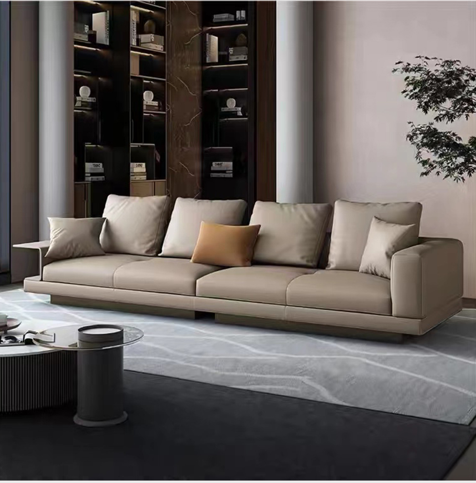 B系优选 极简 生态真皮+仿皮+多层实木板+实木内架+高回弹海绵+实木5分脚 奶咖色 直排大四位 3.66米沙发