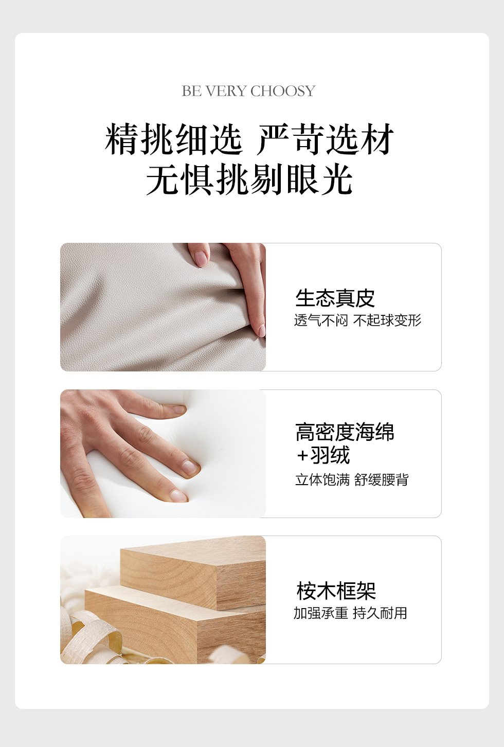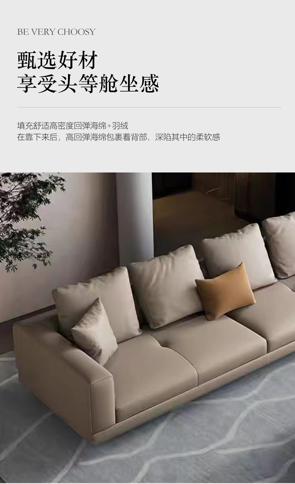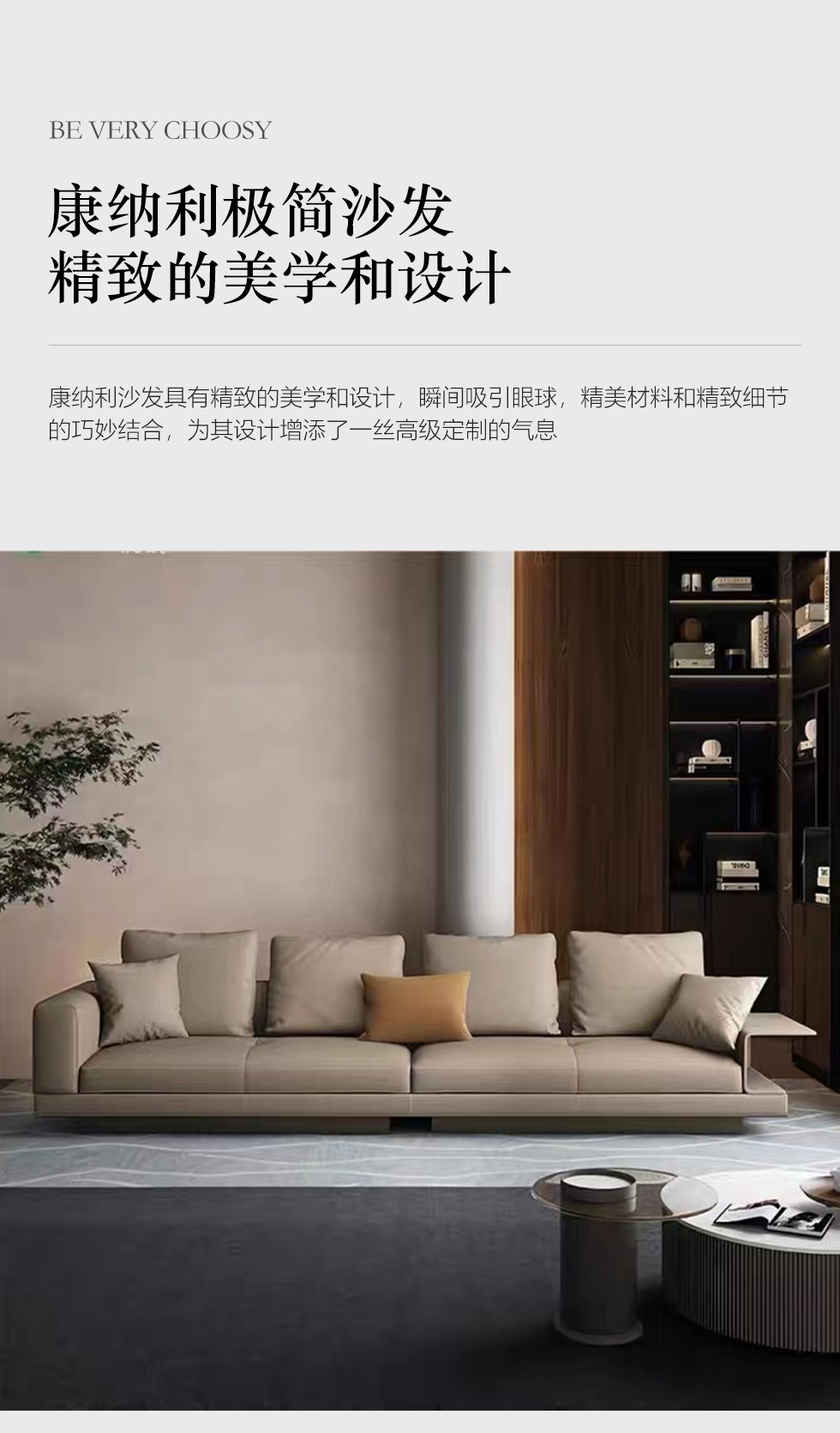 B系优选 极简 生态真皮+松木+高密度回弹海绵+羽绒+钛金铁皮脚 四人位 网红康纳利 2.75米沙发