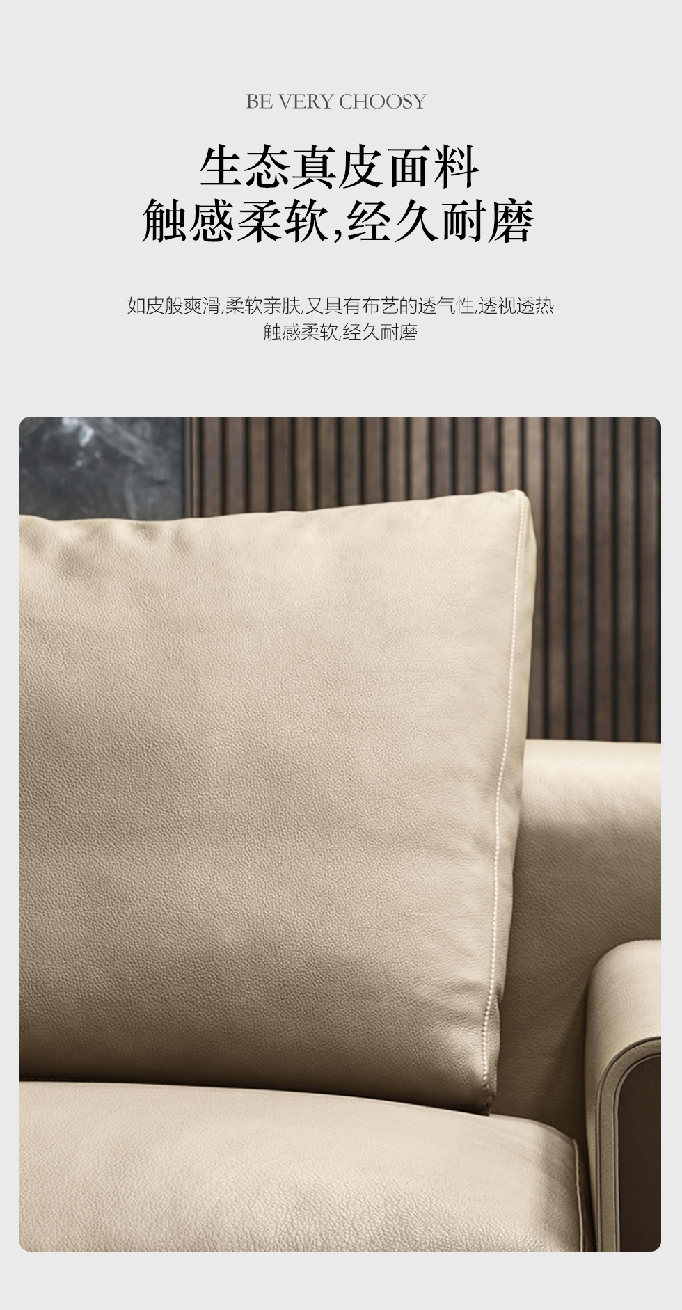 B系优选 极简 接触面头层牛皮+仿皮+多层实木板+实木内架+高回弹海绵+实木5分脚 米色 四位 2.8米沙发¥8155