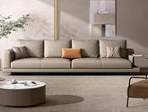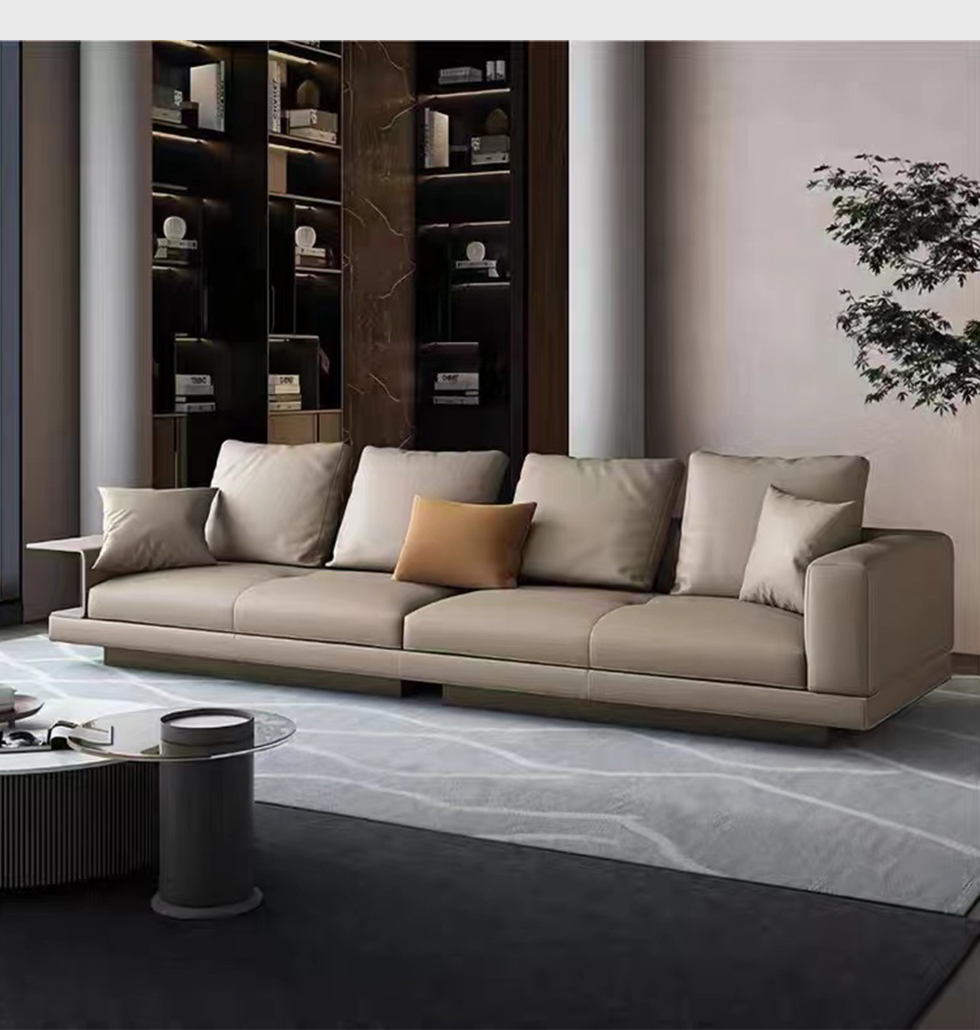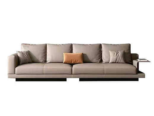 A系优选 极简,极简 生态真皮+仿皮+多层实木板+实木内架+高回弹海绵+实木5分脚 米黄色 大四位 3.44米沙发