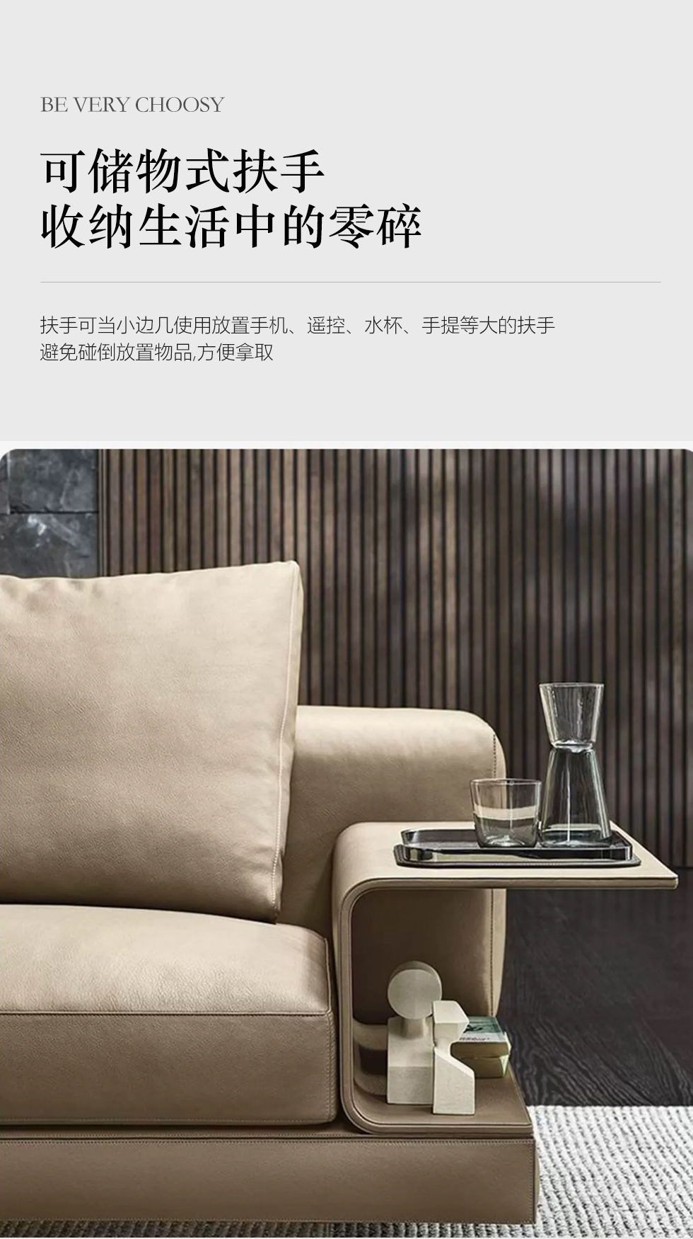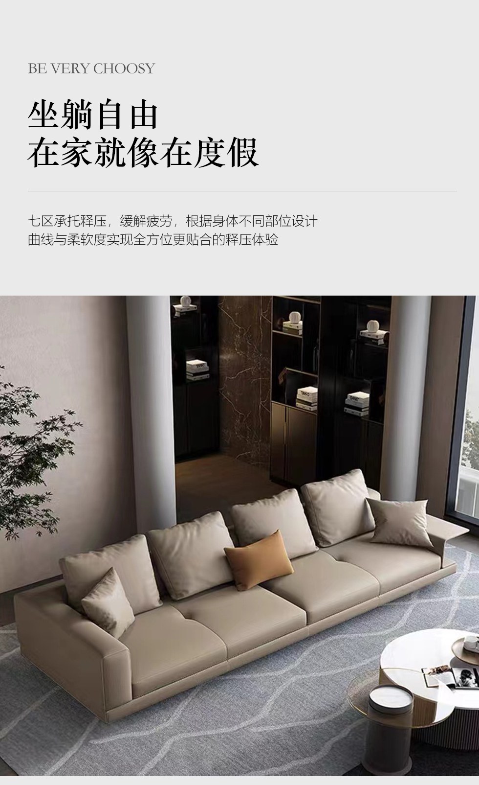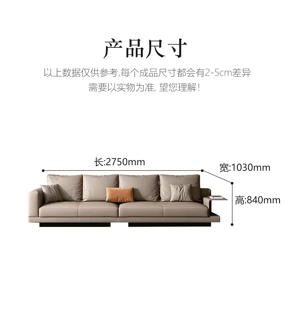 B系优选 极简 生态真皮+松木+高密度回弹海绵+羽绒+钛金铁皮脚 四人位 网红康纳利 2.75米沙发 |