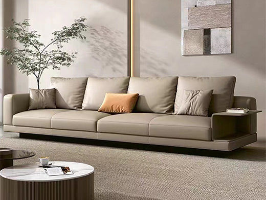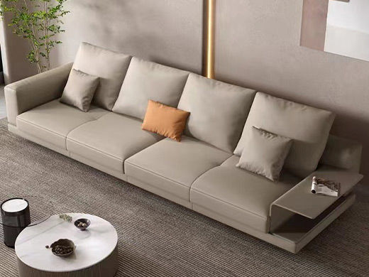 B系优选 极简 生态皮革+仿皮+抛光实木内架(桉木为主) 米色 直排(四位) 2.8米沙发