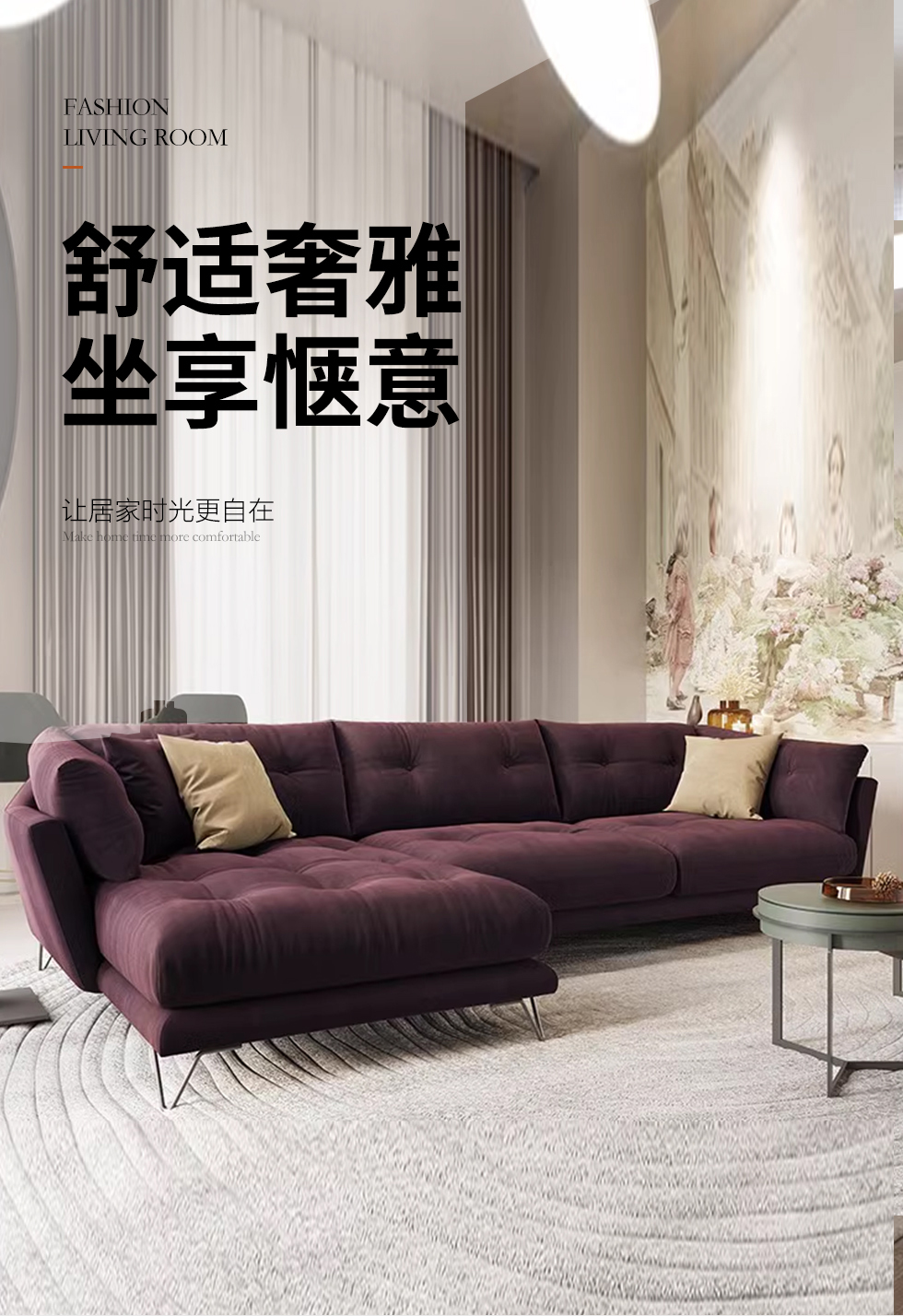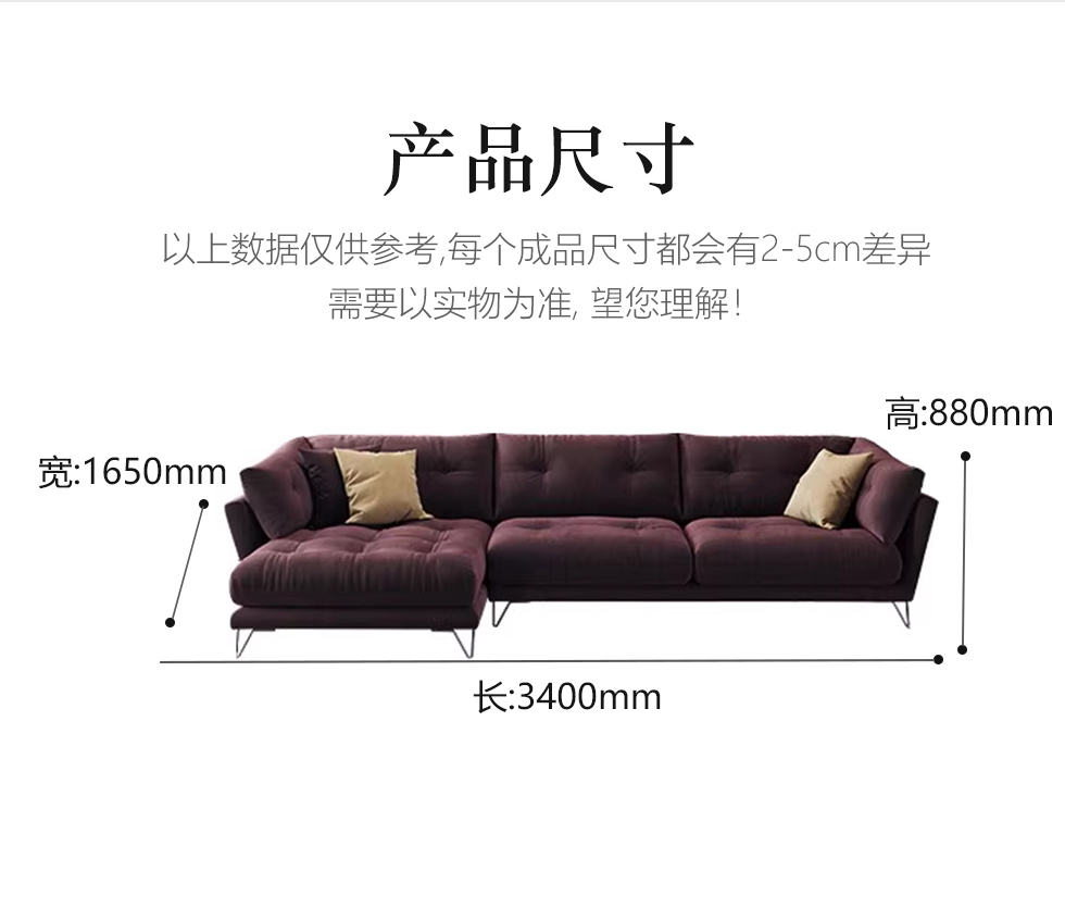 B系优选 现代简约 科技布 高密度回弹海绵座包+进口松木+桉木框架 1+3+右贵妃 3.4米转角沙发