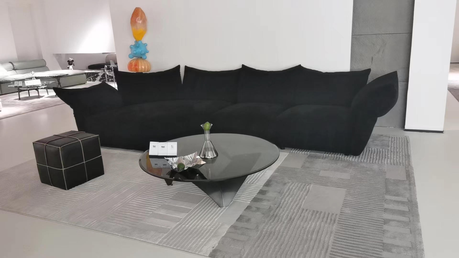 梵纳意简 极简 磨砂布+多层实木板+实木框架+高回弹海绵+碳素钢五金 弧形沙发 网红 极简月球表面弧形2.6米沙发¥9157