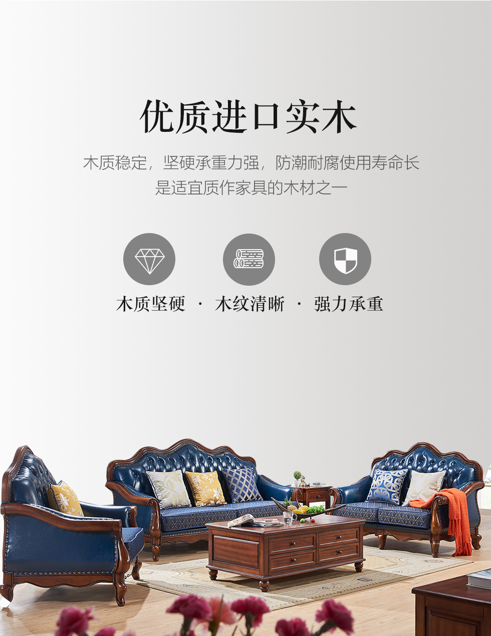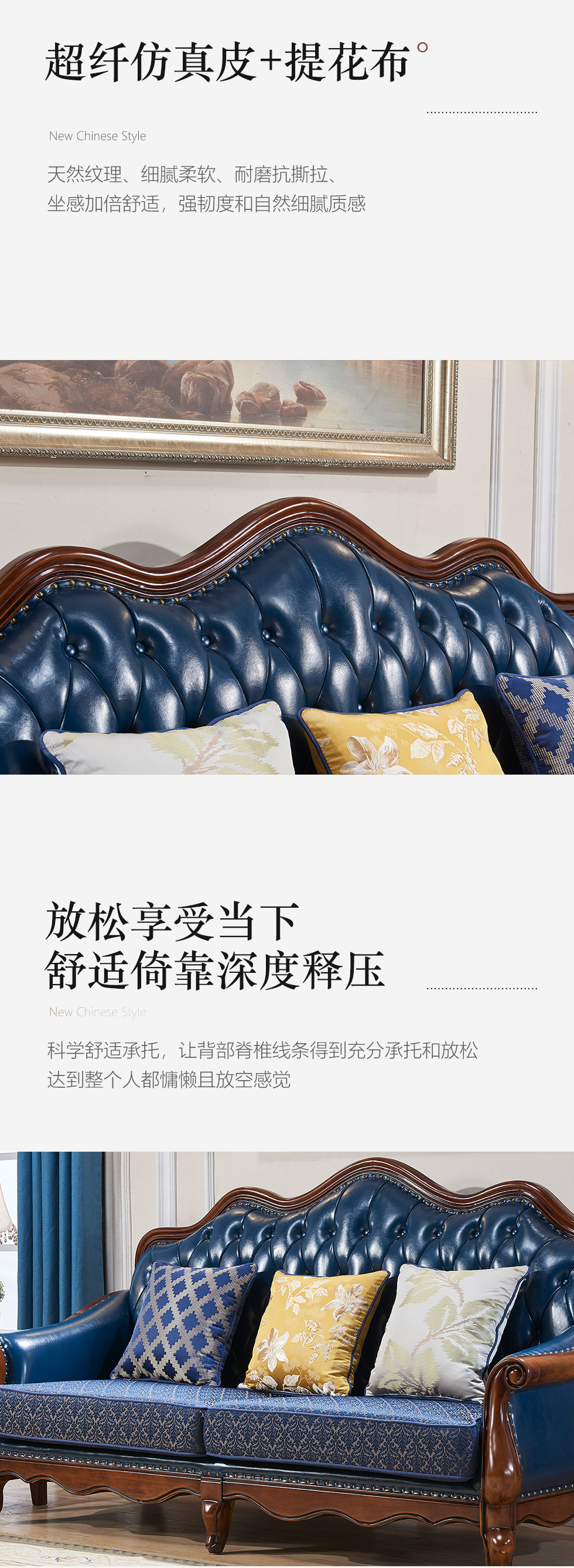 多纳宝 美式 美式 超纤仿真皮+提花布+高密度回弹海绵+进口实木 单位+双位+三位 沙发