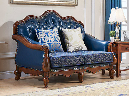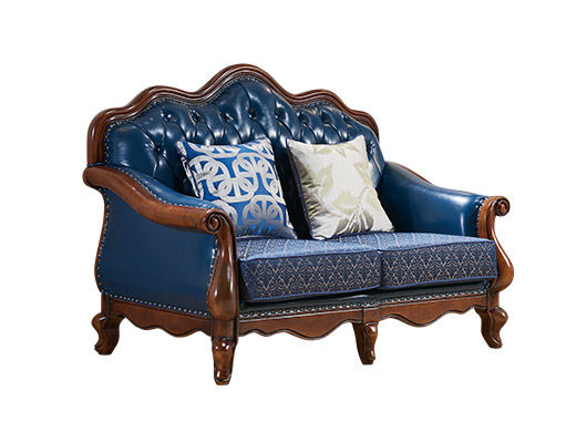 多纳宝 美式 美式 超纤仿真皮+提花布+高密度回弹海绵+进口实木 双人位 1.48米沙发