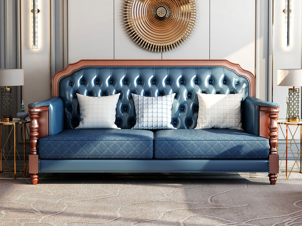 多纳宝 美式 美式 超纤仿真皮+提花布+高密度回弹海绵+进口实木 单位+双位+三位 沙发