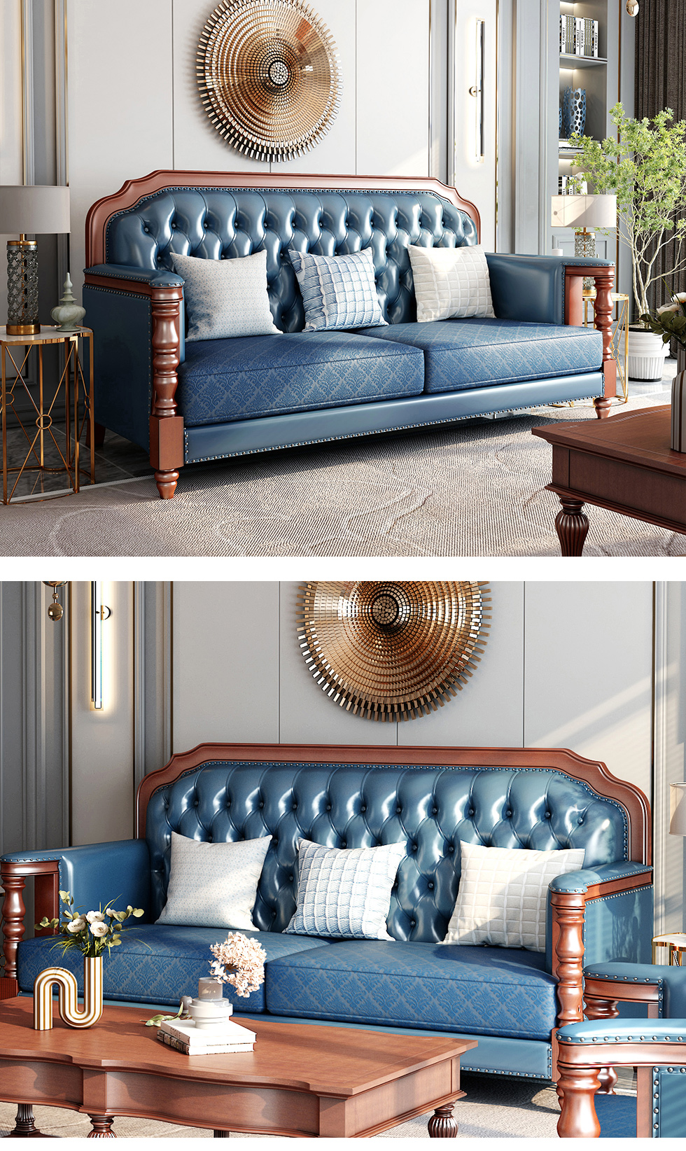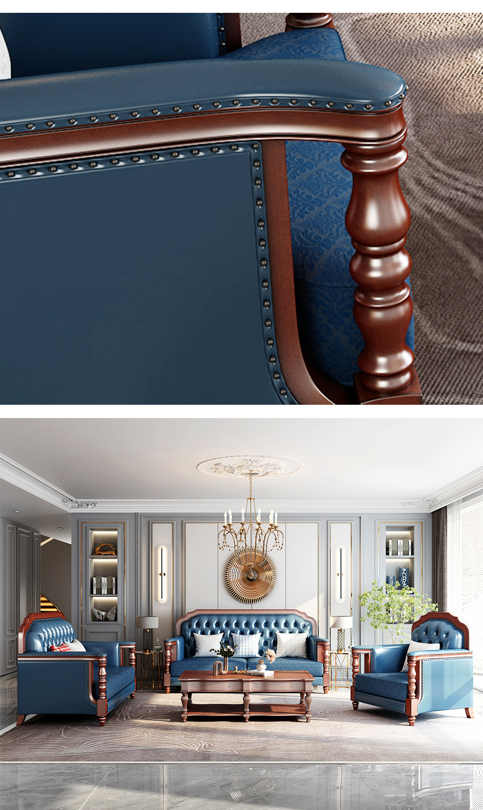 多纳宝 美式 美式 超纤仿真皮+高密度回弹海绵+进口实木 单位+双位+三位 沙发