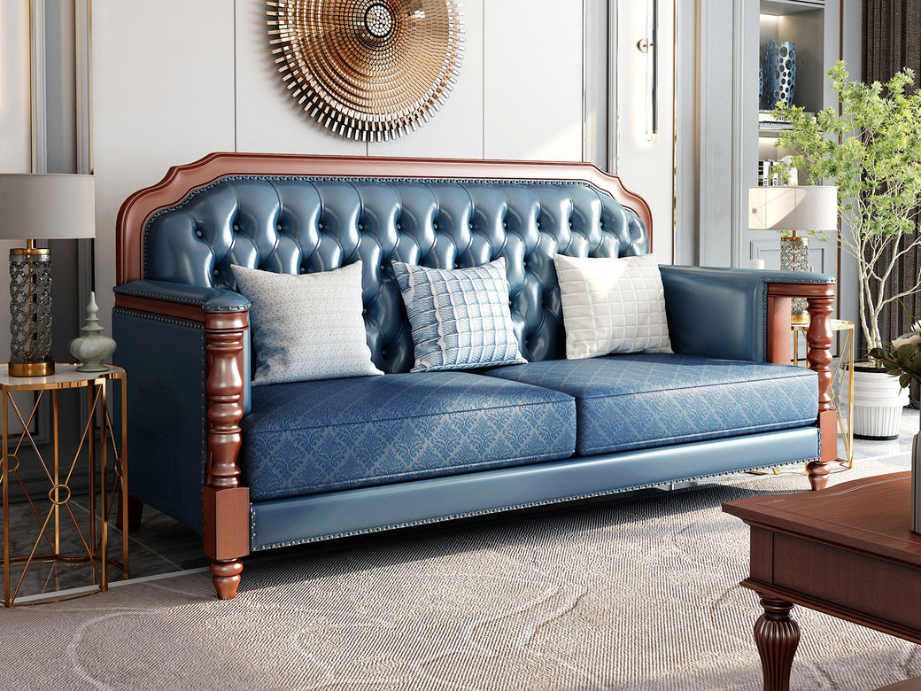 多纳宝 美式 美式 超纤仿真皮+提花布+高密度回弹海绵+进口实木 三人位 1.98米沙发