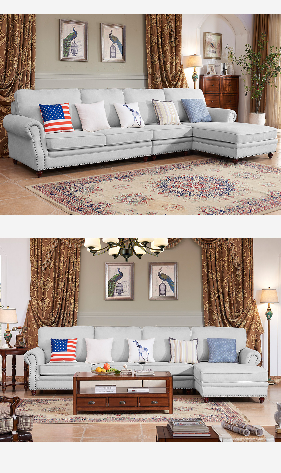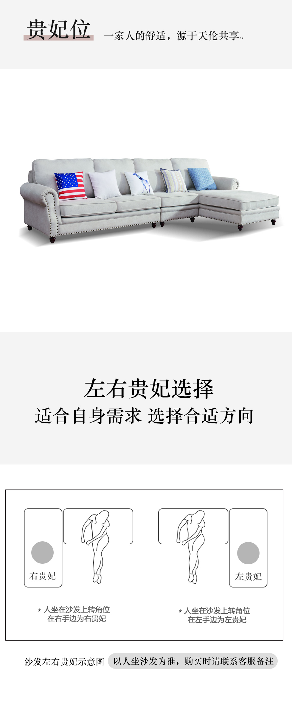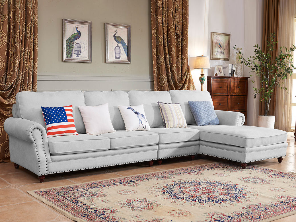 多纳宝 美式 美式 棉麻布+高密度回弹海绵+进口实木 1+3+左贵妃 转角3.42米沙发