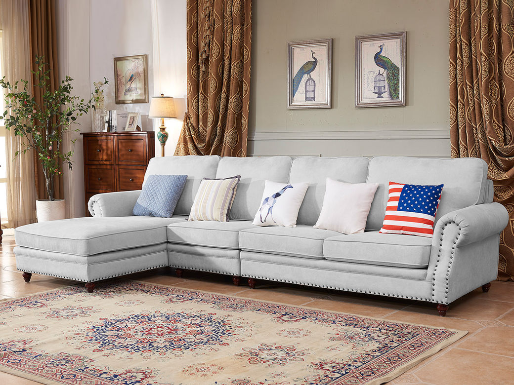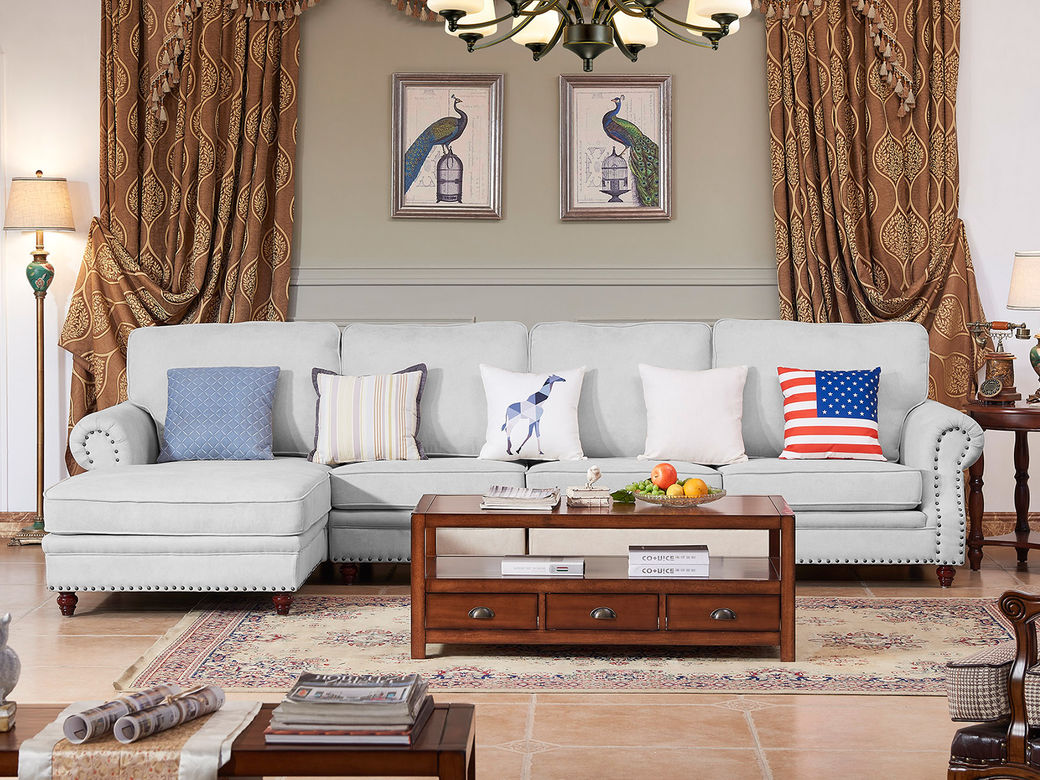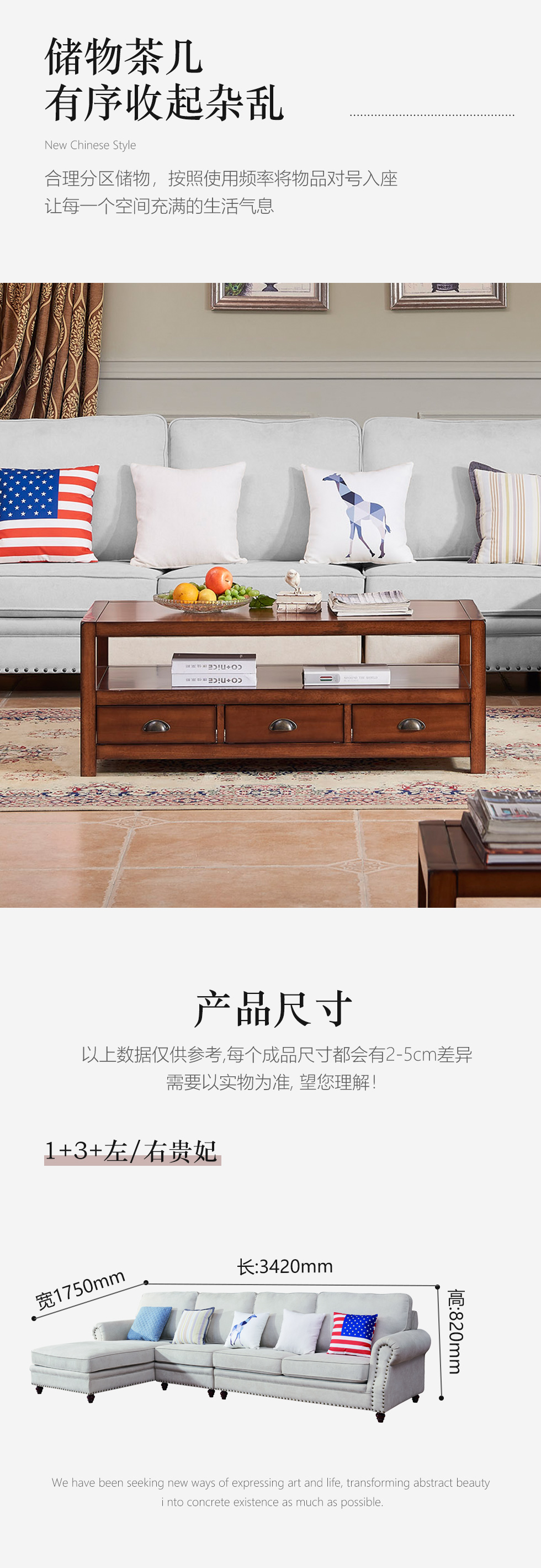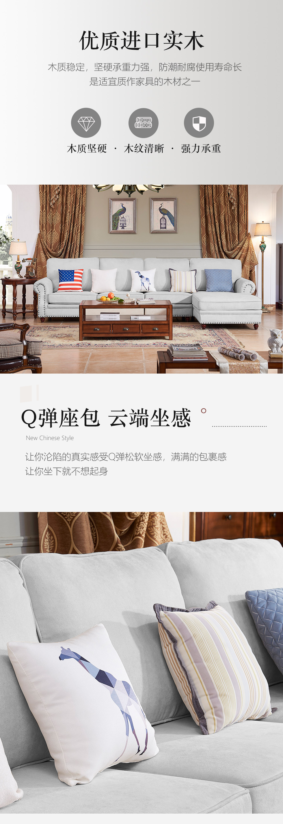 多纳宝 美式 美式 棉麻布+高密度回弹海绵+进口实木 1+3+右贵妃 转角3.42米沙发