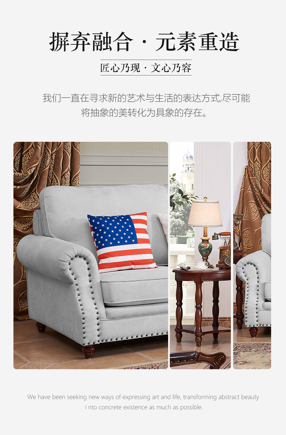 美克金典 美式 进口榉木+全实木框架+高回弹海绵+棉麻布+超纤皮 香槟银 1+2+3人位 沙发| 商品详情 | 规格参数 | 评价(0) | 购买咨询() | 产品实拍图 | 服务标准 |