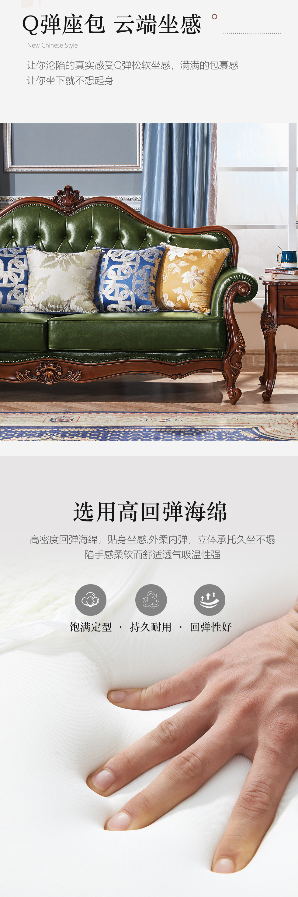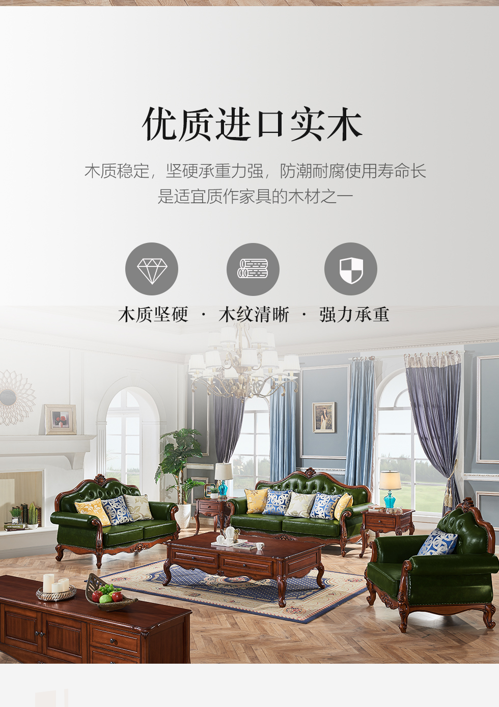 多纳宝 美式 美式 超纤仿真皮+提花布+高密度回弹海绵+进口实木 单位+双位+三位 沙发