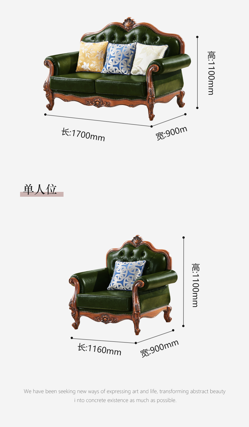 多纳宝 美式 美式 超纤仿真皮+高密度回弹海绵+进口实木 单人位 1.16米沙发 |