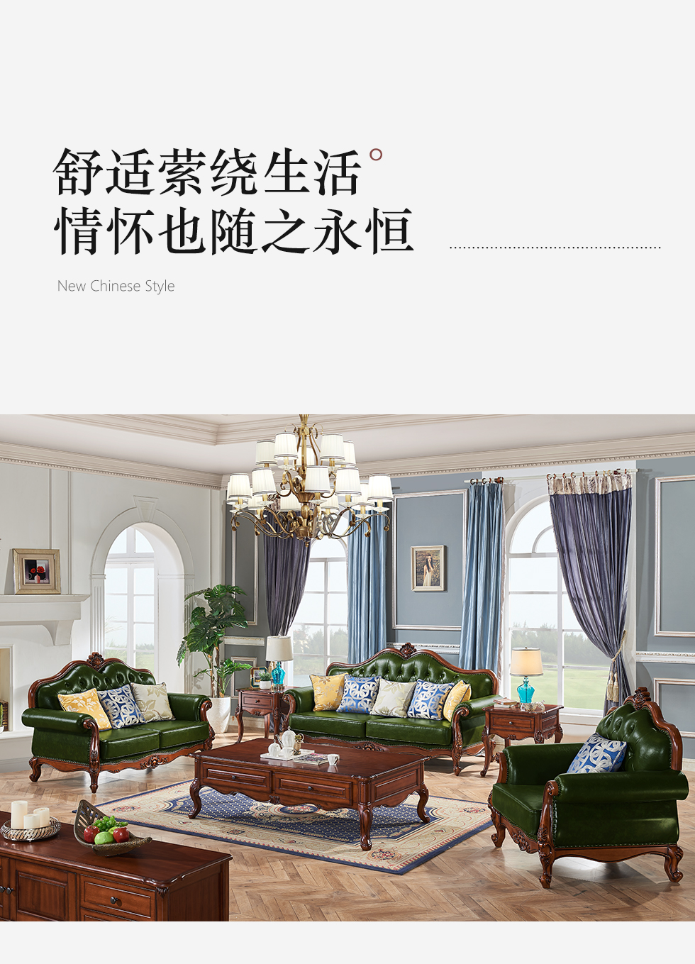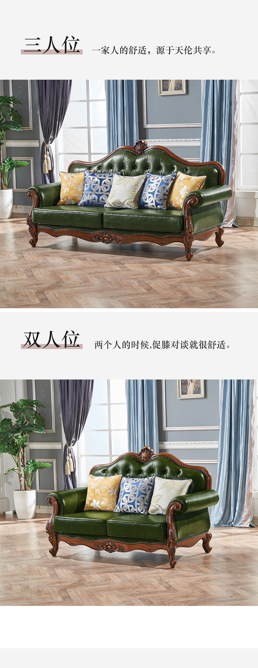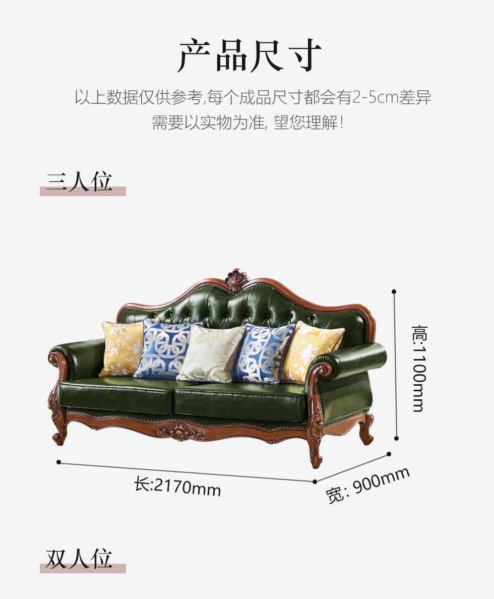 多纳宝 美式 美式 超纤仿真皮+高密度回弹海绵+进口实木 三人位 2.17米沙发 |