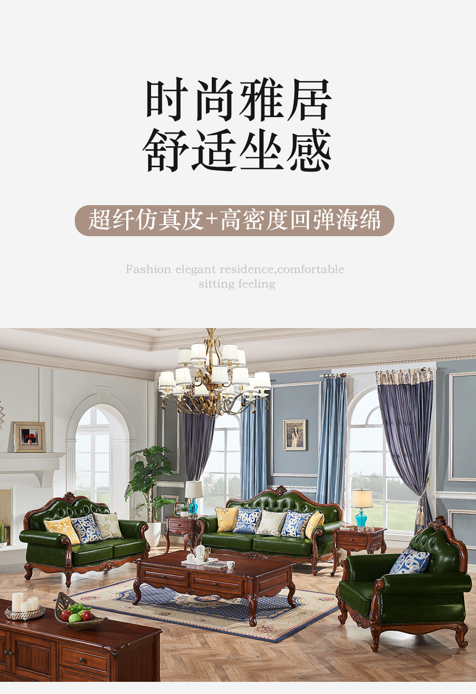 多纳宝 美式 美式 超纤仿真皮+高密度回弹海绵+进口实木 单位+双位+三位 沙发
