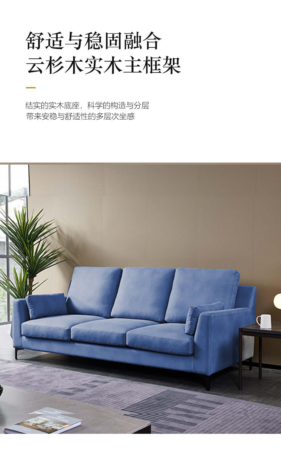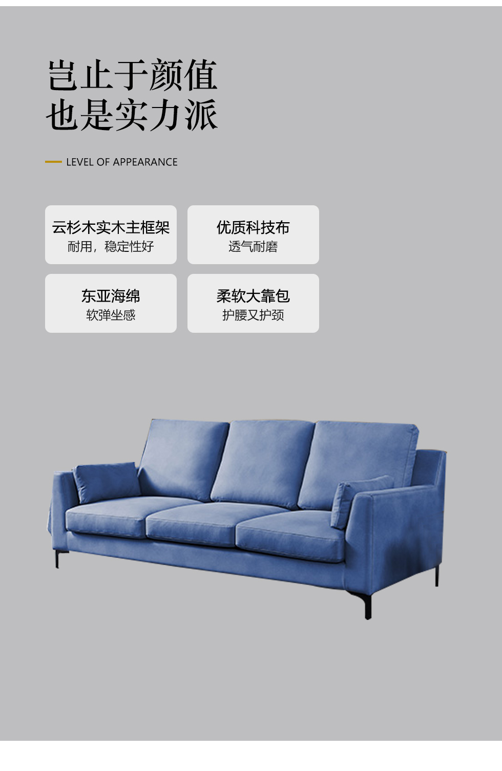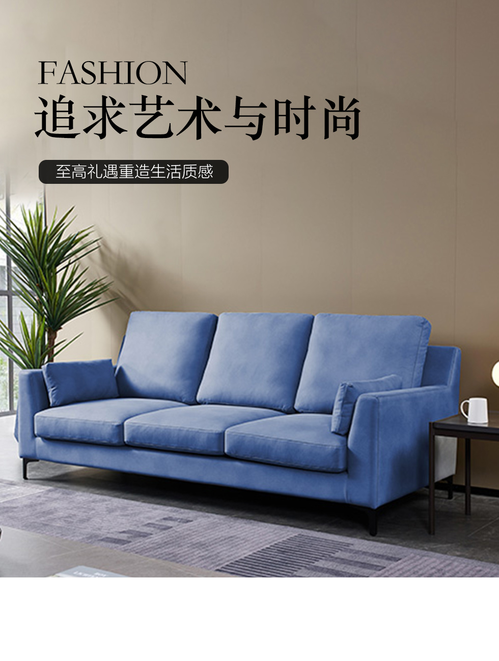 CBD家居 现代简约 拥有皮的质感+布的透气性科技布+东亚海绵+云杉木实木主框架 E1059星光蓝 三人位2.27米沙发【库存有限,卖完即止】 |