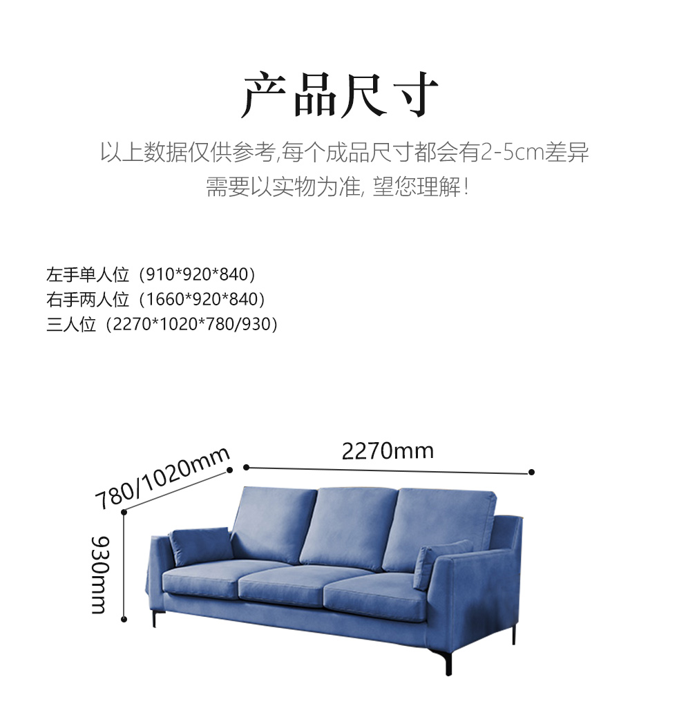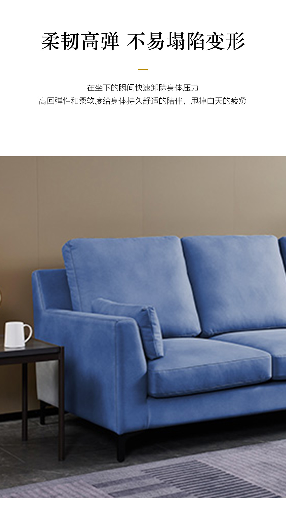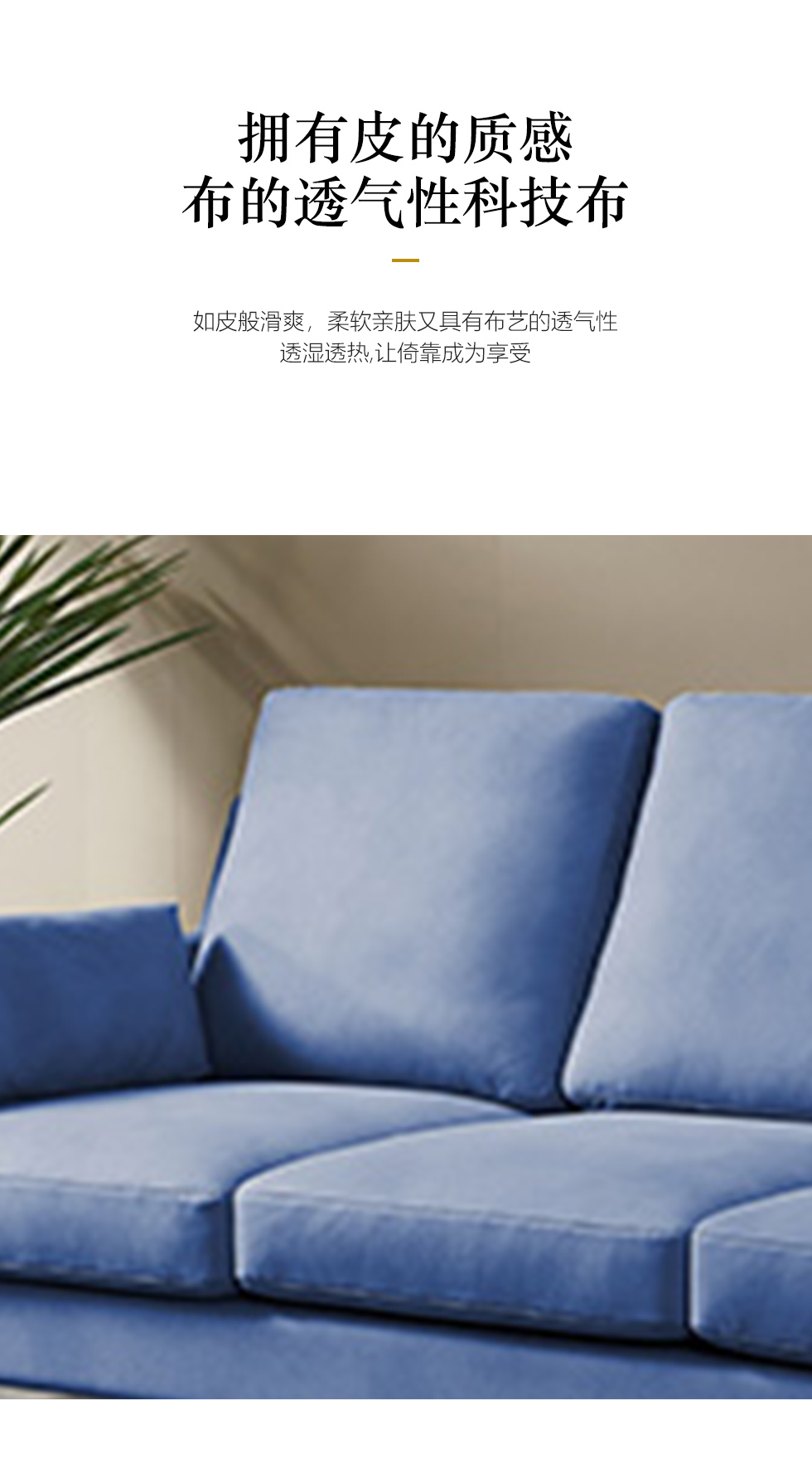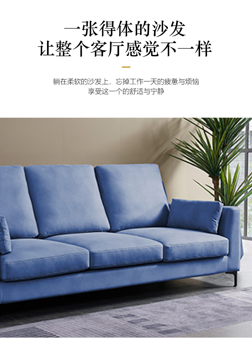 CBD家居 现代简约 拥有皮的质感+布的透气性科技布+东亚海绵+云杉木实木主框架 E1059星光蓝 三人位2.27米沙发【库存有限,卖完即止】 |