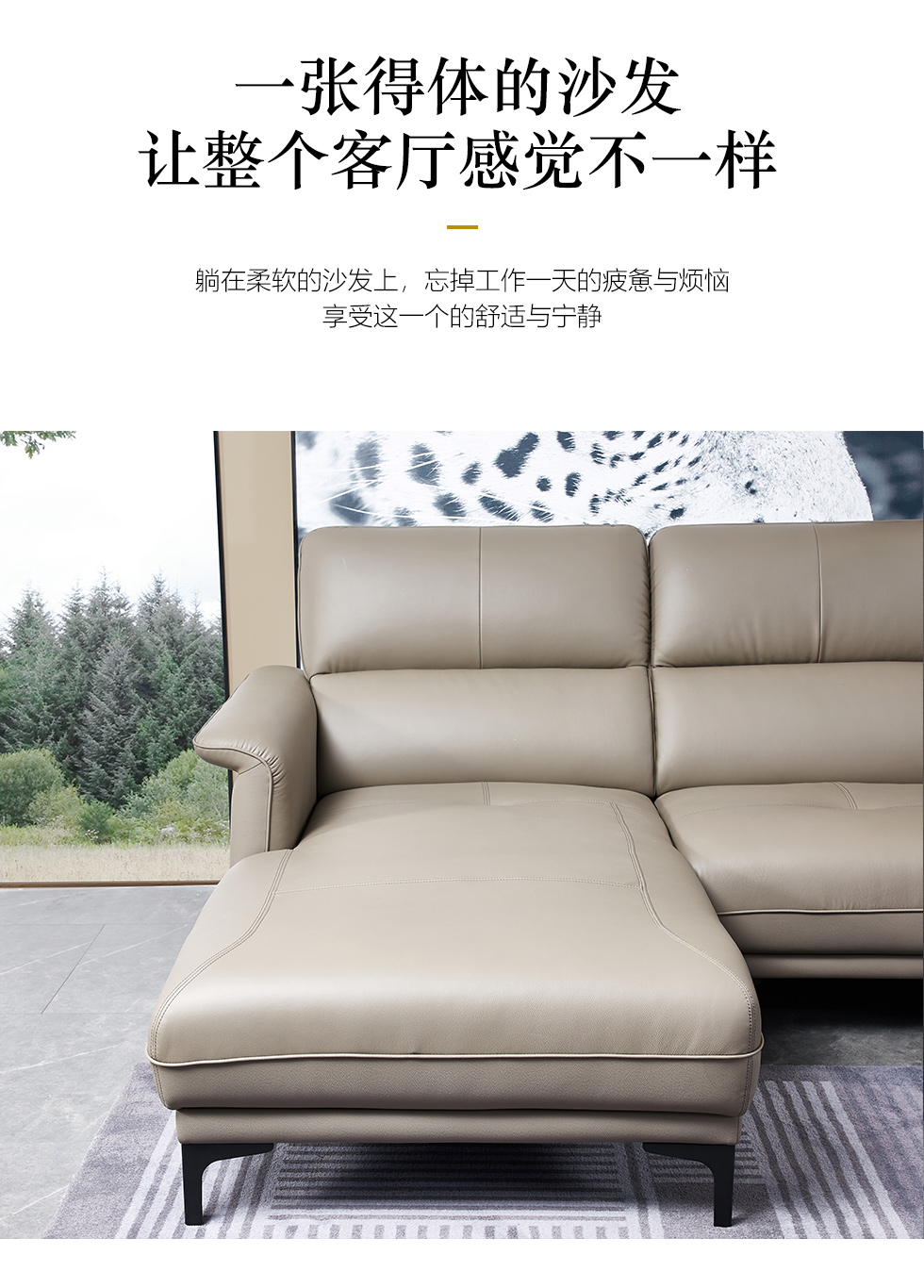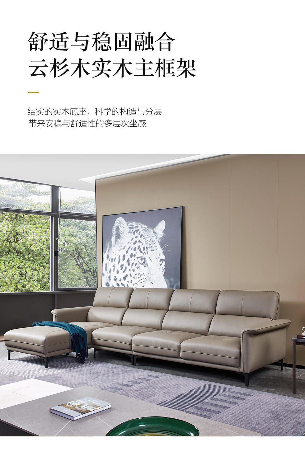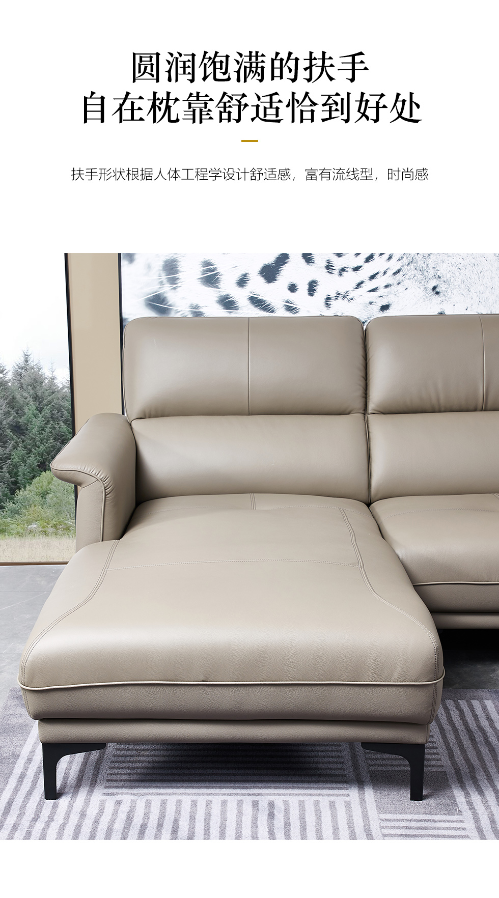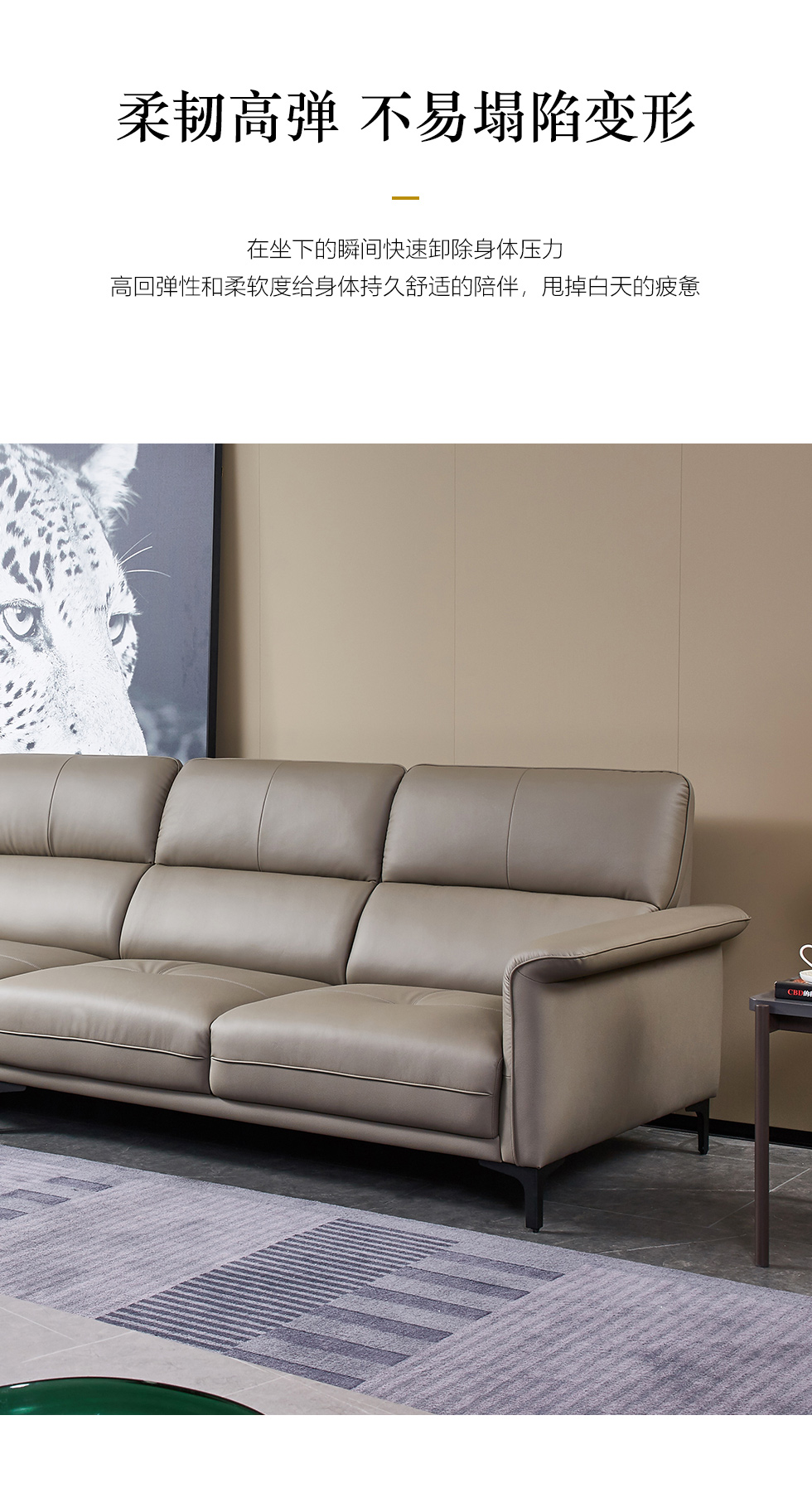 CBD家居 现代简约 接触面真皮+非接触面仿皮+超弹海绵+云杉木实木主框架+五金脚 1+2+左贵妃 3.17米沙发