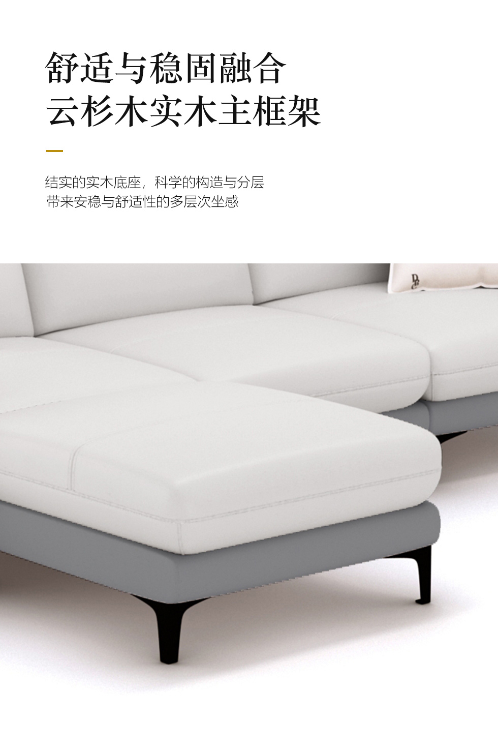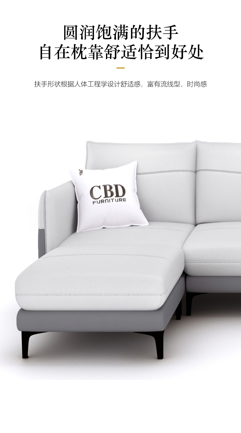 CBD家居 现代简约 优质纳纤皮+东亚海绵+云杉木实木主框架 主色HE12洁白辅色HE01高级灰 单人位+三人位+脚踏组合 沙发