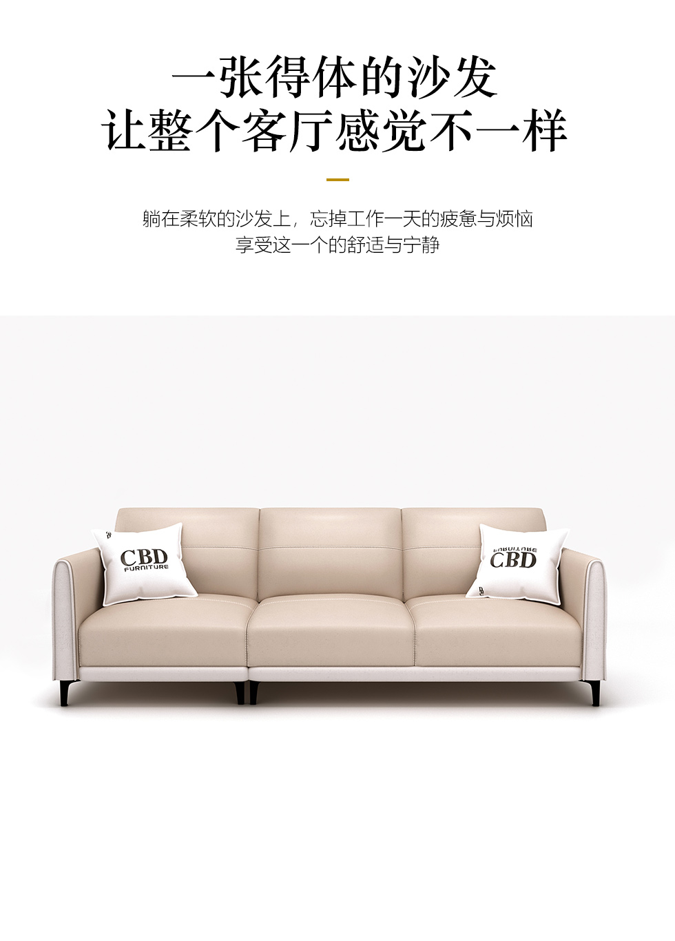 CBD家居 极简 优质纳纤皮+东亚海绵+云杉木实木主框架 主色HE07浅绛色辅色HE02蜡白 脚踏