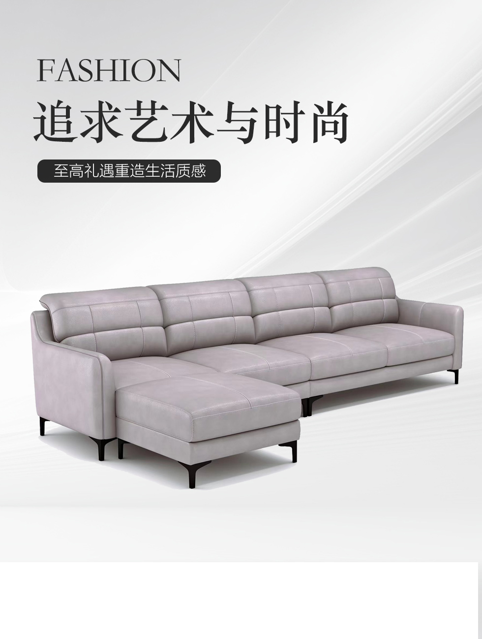 CBD家居 现代简约 接触面真皮+非接触面仿皮+东亚海绵+云杉木实木主框架 TE10燕羽灰 1+3+左手贵妃 转角3.2米沙发¥17314