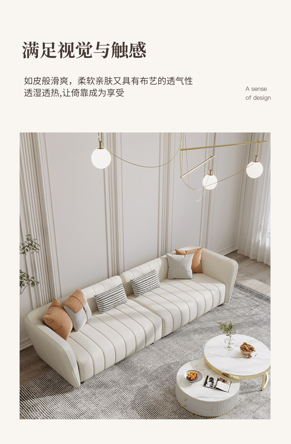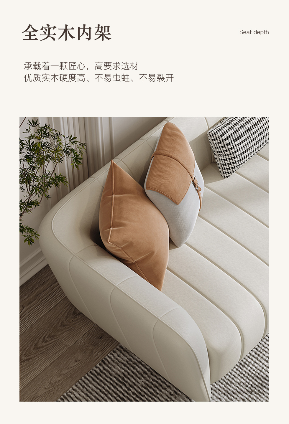 A系优选 奶油风 高密度海绵+全实木框架 科技布面料 抱枕羽绒 图片色 四人位 网红钢琴键 2.7米沙发¥6990