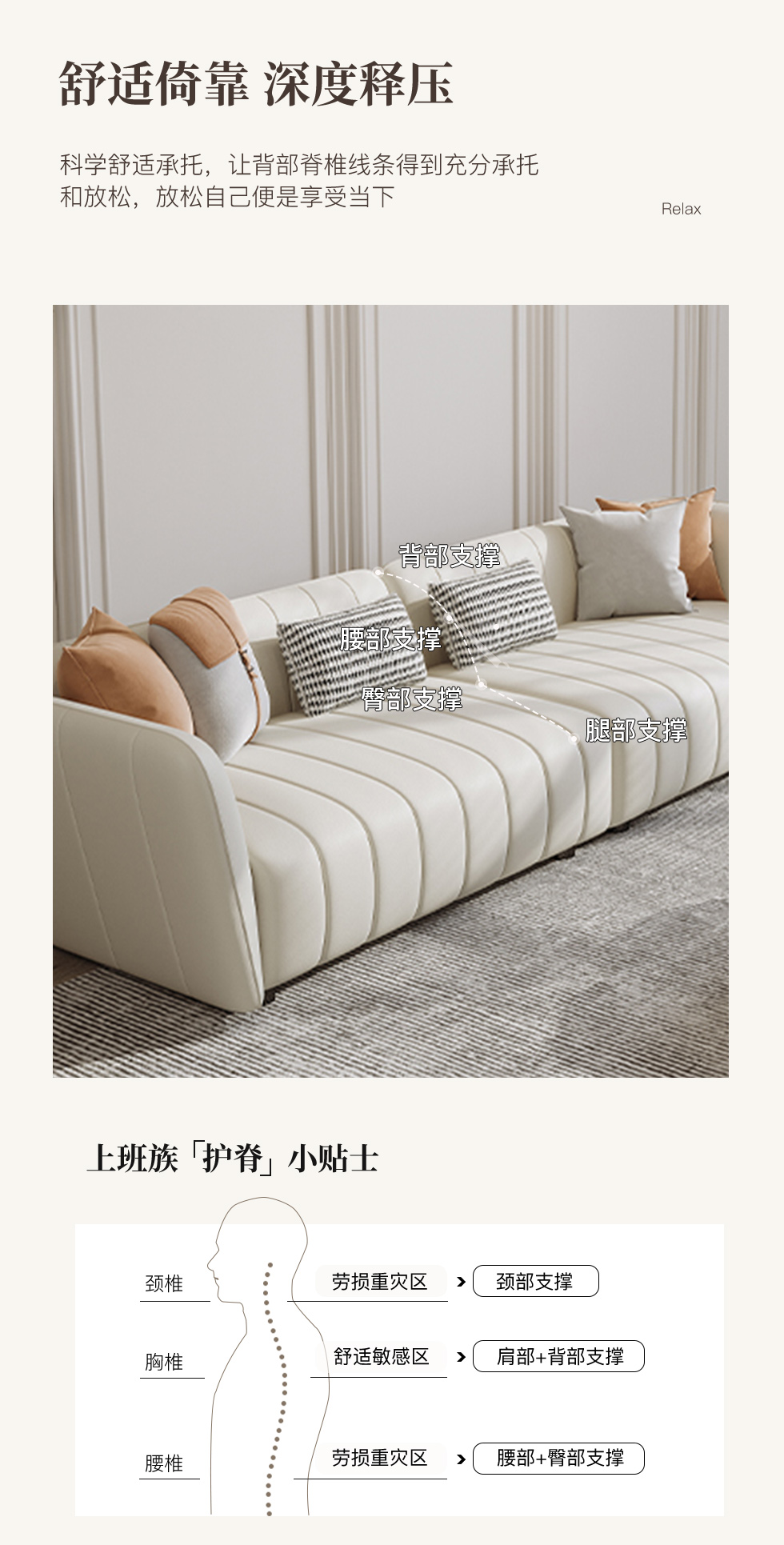 云端 奶油风 科技布+高密度海棉+乳胶米白色 三人位 网红豆腐块2.2米沙发¥4660