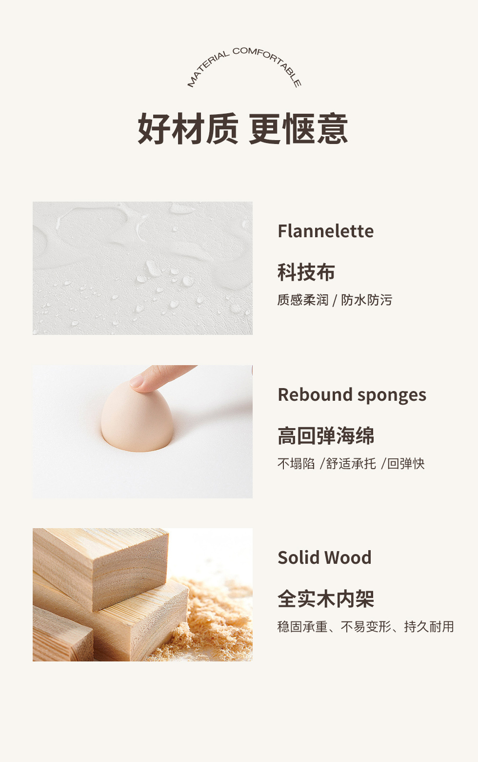 云端 奶油风 科技布+俄罗斯进口落叶松内架米白色 1+3+左贵妃转角3.4米沙发