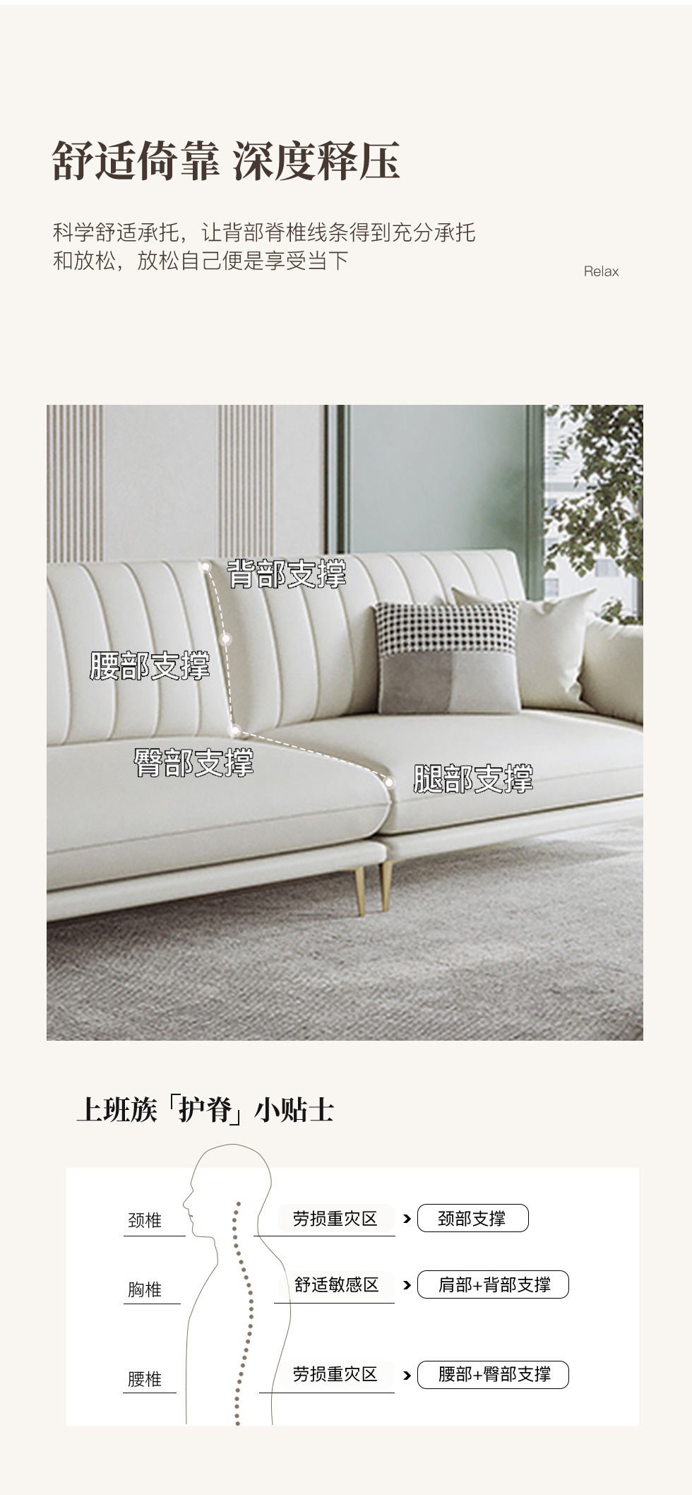 云端 奶油风 超纤皮+全实木内架+乳胶+高密度海棉米白色 三人位 2.3米沙发¥8183