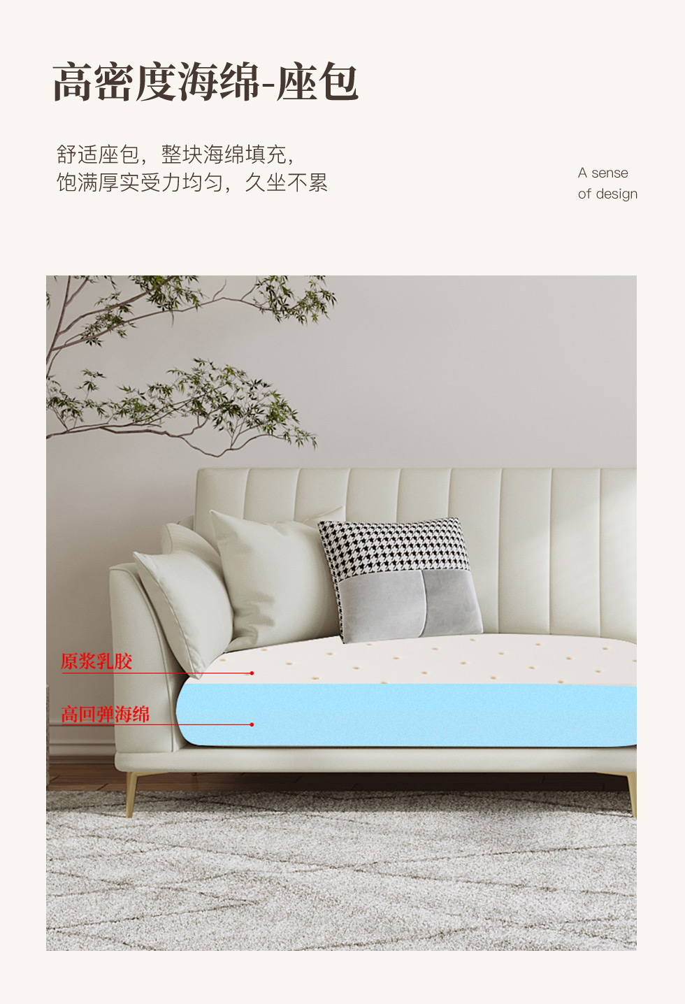 云端 奶油风 超纤皮+全实木内架+乳胶+高密度海棉米白色 三人位2.2米沙发